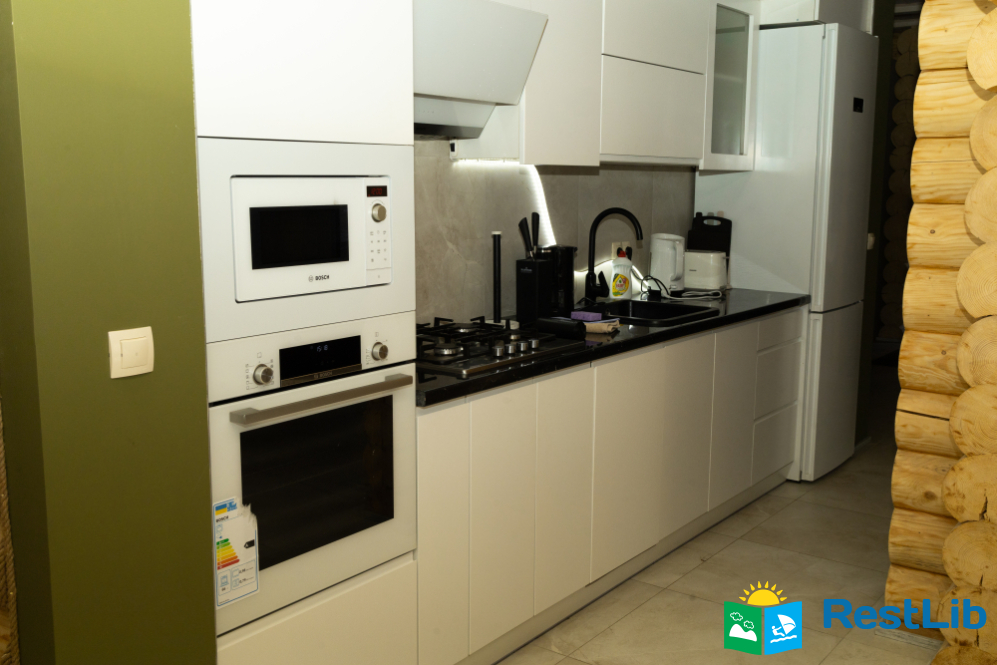 В котеджах є власна кухня та вся необхідні техніка та посуд для приготування їжі. Можна замовляти харчування на доставку. Сніданки - 200 грн