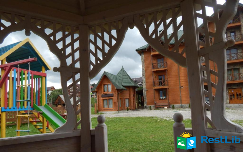 На території є автостоянка, дитячий майданчик, мангал та альтанка.