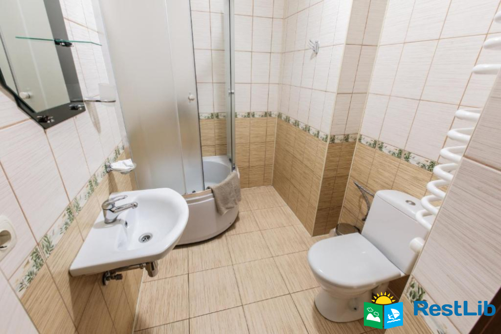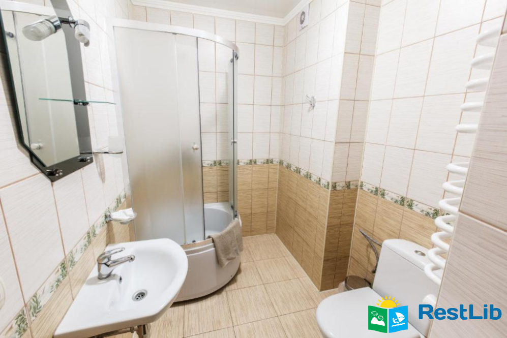Це чотириповерхова будівля з номерами для гостей, обладнана всім необхідним для комфортного перебування. Безперервно працює гаряче та холодне водопостачання, а опалення є автономним.