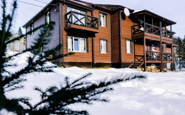 Приватна садиба "Два сини та донька" розташована на гірськолижному курорті Буковель, є приміщення для зберігання спорядження, чудовий краєвид на гори, власна парковка, безкоштовний Wi-Fi. В кожній кімнаті є телевізор з плоским екраном. Кімнати оздоблені деревом, на підлозі килимове покриття, підлога в ванних кімнатах підігрівається. В деяких кімнатах є балкони. До першого паркінгу 400м, 7-10 хв. пішки.