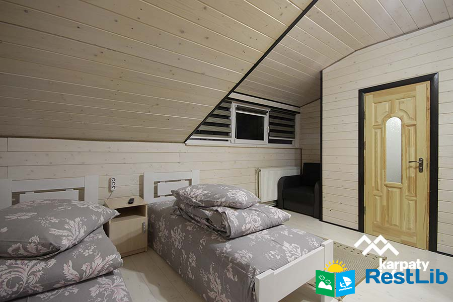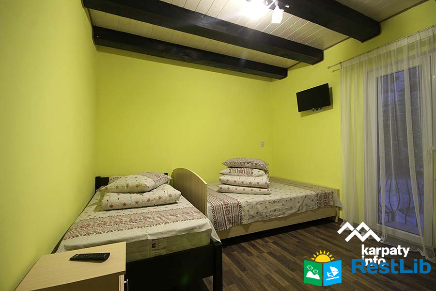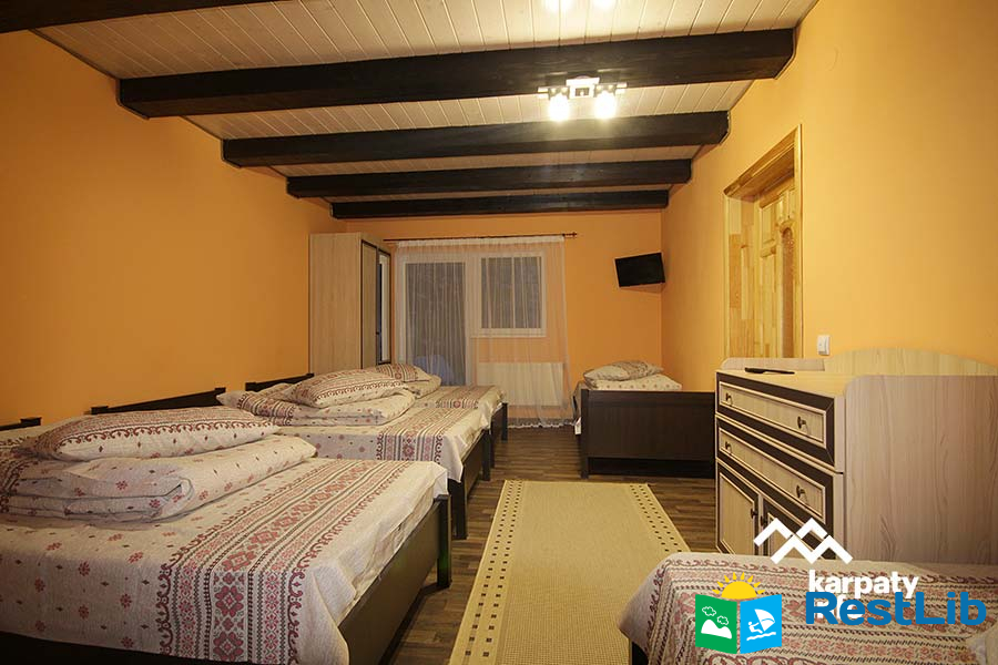4 односпальні ліжка, шафа для одягу, телевізор, додаткове місце — розкладний диван, санвузол.
