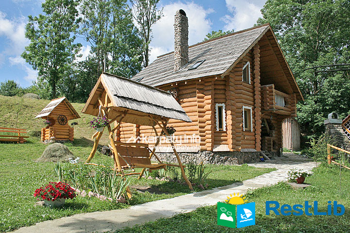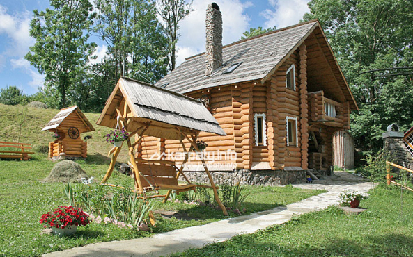 Двоповерховий будинок з дикого зрубу на 2 номери (8-10 осіб).