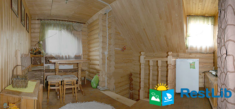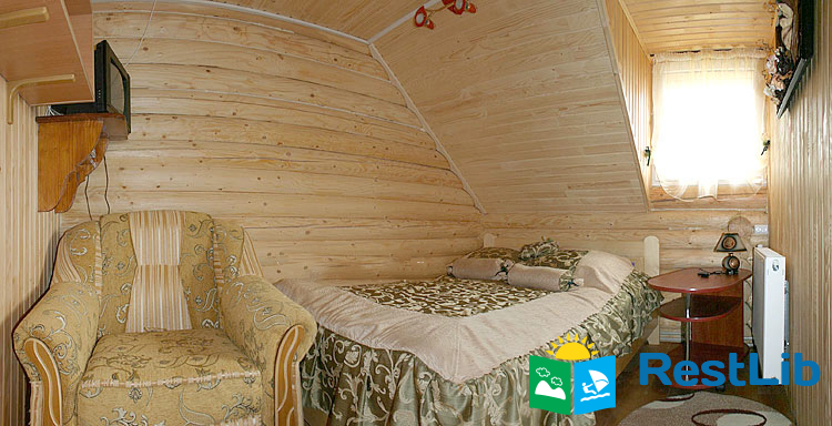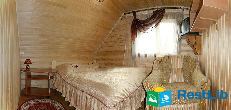 З окремого входу на другому поверсі є 3 двомісні кімнати (в кожній — двоспальне ліжко, телевізор, журнальний столик, додаткове місце — розкладне крісло), хол (холодильник, обідній стіл) та санвузол (туалет, умивальник, душова кабіна).