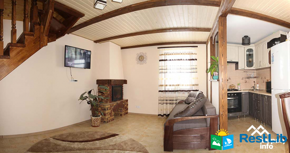 Двоповерховий котедж на 8-10 місць. На подвір'ї є альтанка, мангал, гойдалка, батут.
