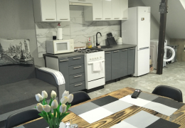 - повністю обладнана кухня (посуд, холодильник, чайник, плита, духовка);