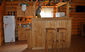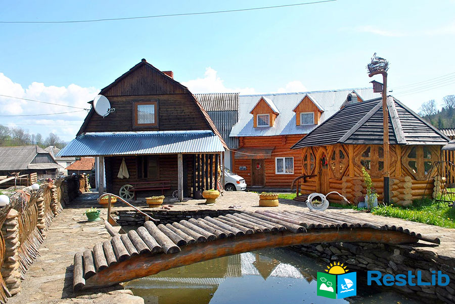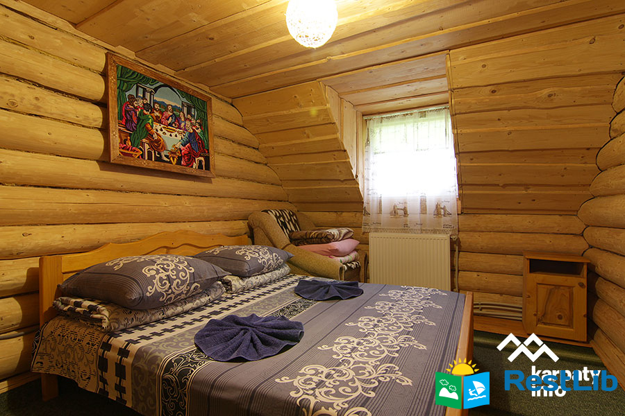 На подвір'ї є доповерховий будинок на 7 номерів (14-16 місць), сауна, чан, ставок, альтанка з мангалом.