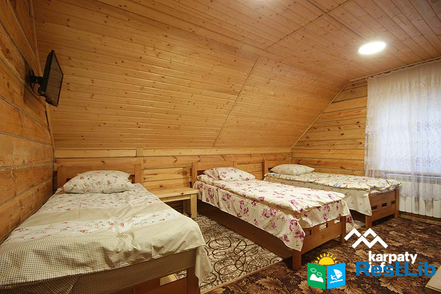 На другому поверсі — кухня, 2 двомісні номери, 2 тримісні номери, санвузол.