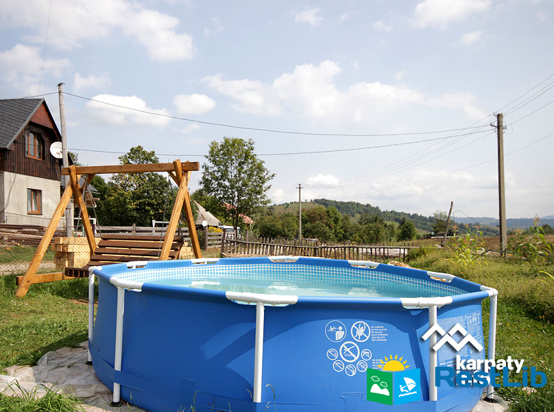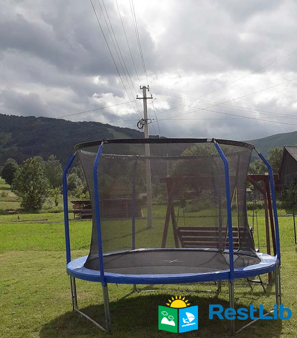 На території є 2 будинки, альтанка, гойдалка, батут, літній басейн.