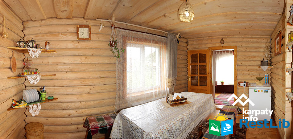 • обідній зал (стіл з лавами, холодильник, електрочайник, посуд);