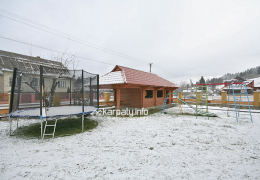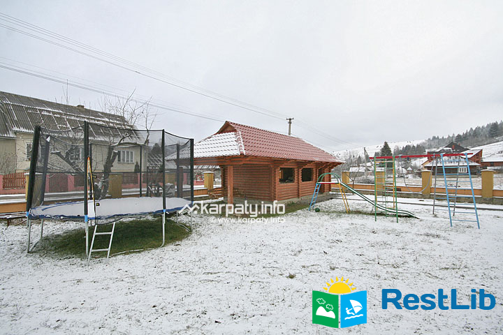 На території розташований двоповерховий котедж на 8 місць, альтанка, мангал, дитячий майданчик, батут.