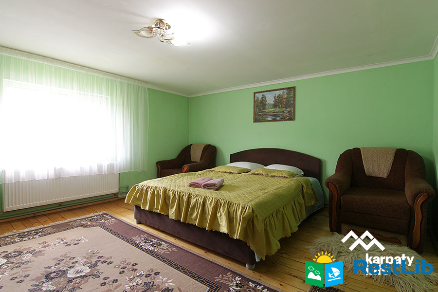 На другому поверсі — двокімнатний номер (в одній кімнаті є двоспальне ліжко, шафа для одягу, телевізор; в іншій — розкладний диван, шафа для одягу, телевізор); 2 двомісні номери (у кожному є розкладний диван, телевізор, в одному номері є додаткові місця — розкладні крісла); роздільний санвузол (душ, умивальник; окремо — туалет, умивальник).