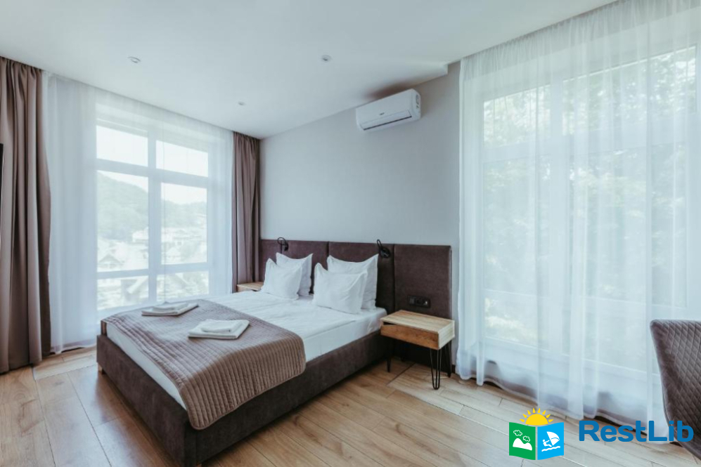 Наш готель розташувався серед гір та лісів в мальовничому курортному селищі Шаян, здавна відомому своїми лікувальними водами Шаянського родовища вуглекислих мінеральних вод.