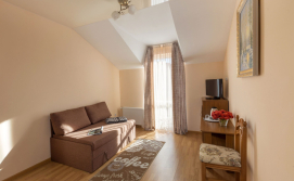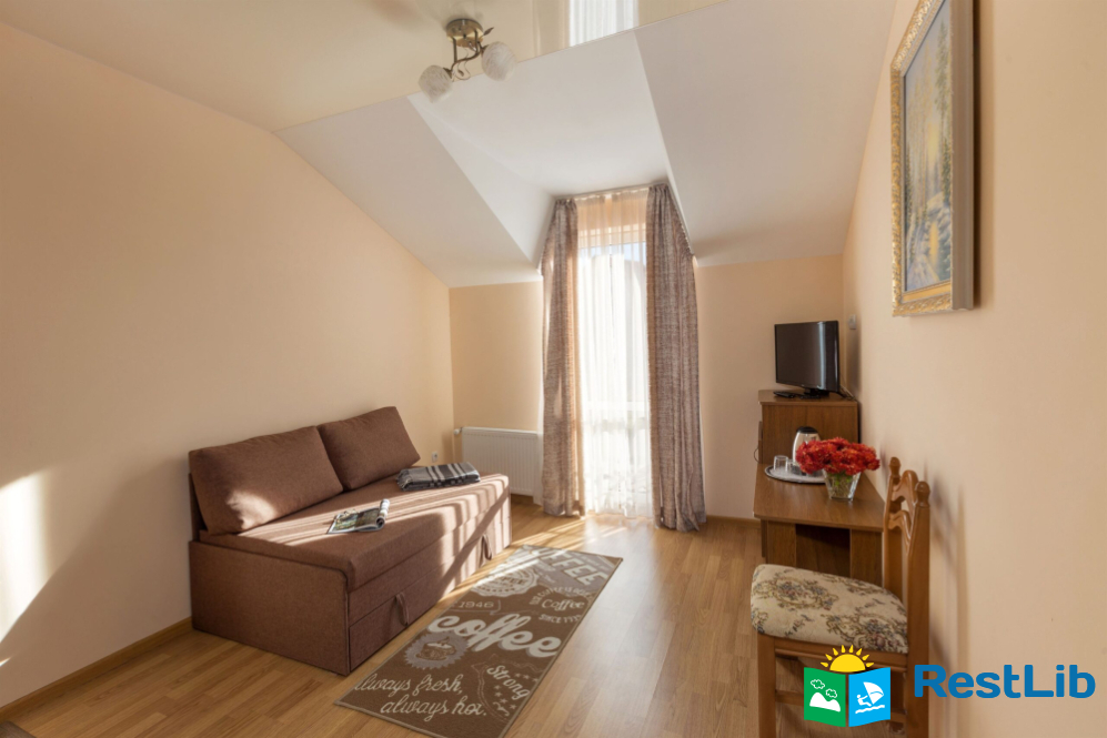 Номер Півлюкс затишний і компактний. Оснащений всім необхідним для комфортного перебування. В номері є балкон, з якого відкривається мальовничий вид на гори Прикарпаття.