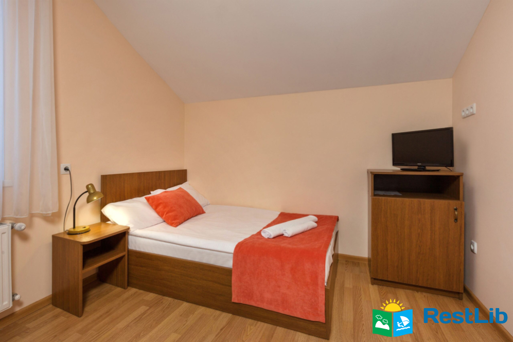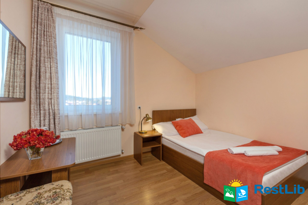 Номер Одномісний затишний і компактний. Оснащений всім необхідним для комфортного перебування. Без балкону. Пейзаж з вікон номеру відкривається на гори.