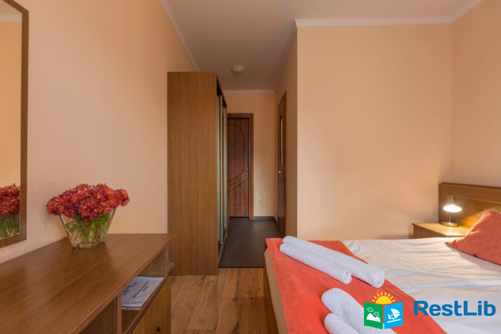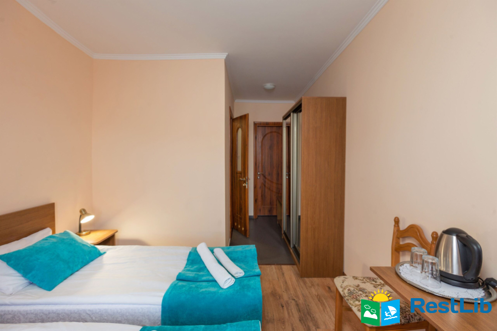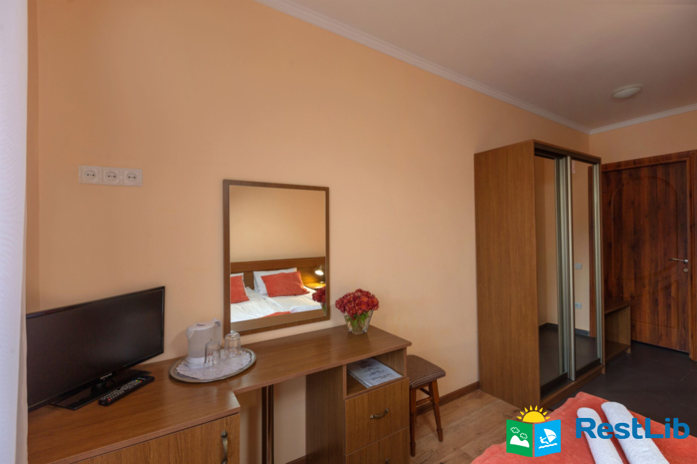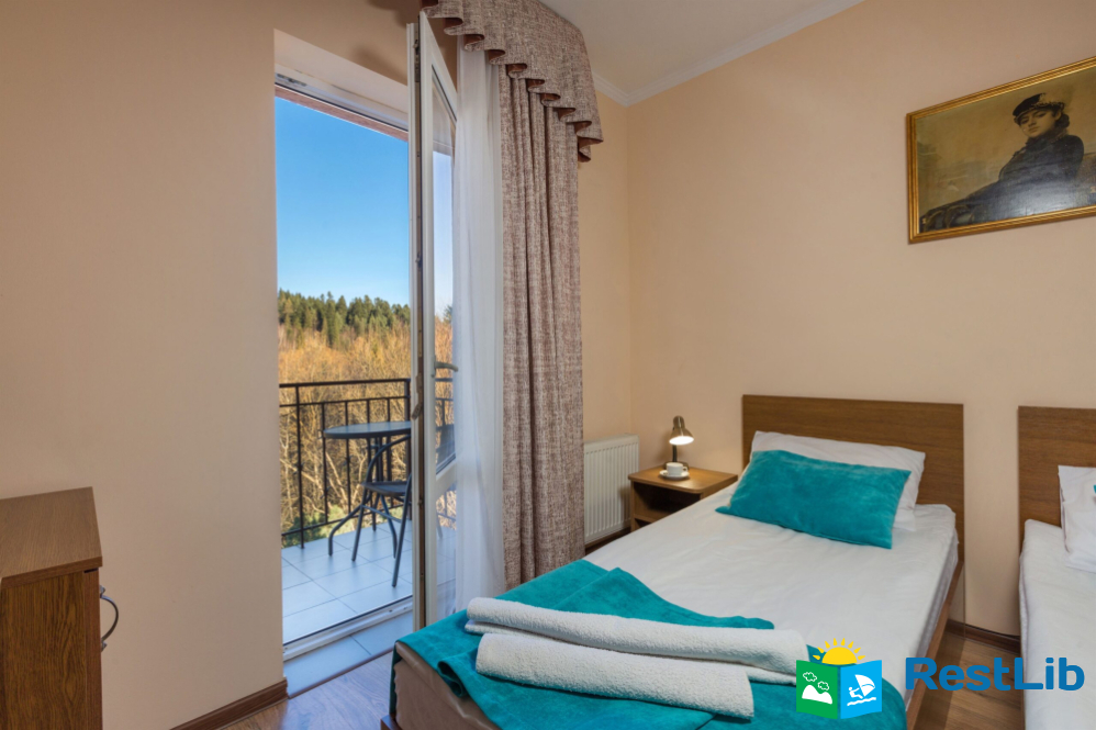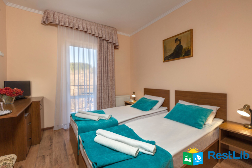 Номер Стандарт затишний і компактний. Оснащений всім необхідним для комфортного перебування. Без балкону. Пейзаж з вікон номеру відкривається на гори.