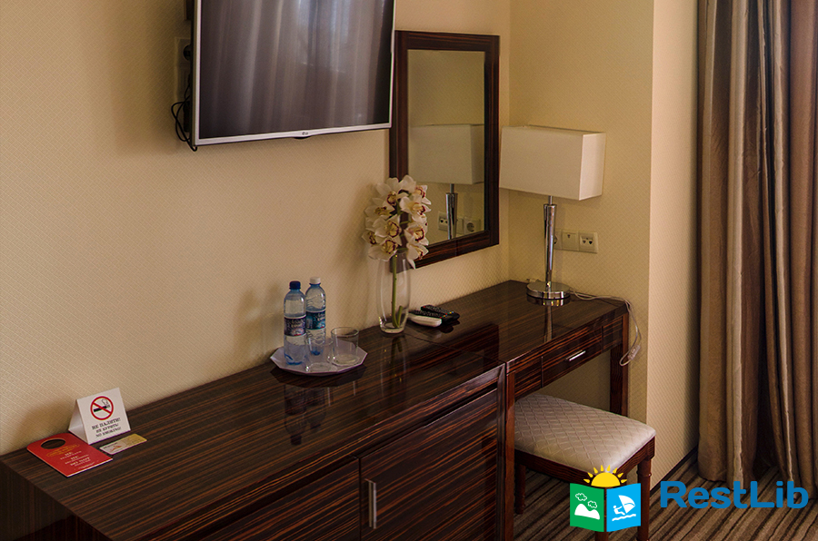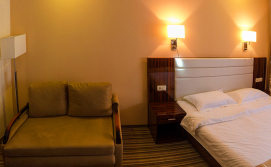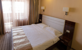 Світлий номер з балконом. Ванна кімната з душем. В номері є кондиціонер. смарт-телевізор із супутниковим ТБ, сейф , міні-бар, безплатний Wi-fi, засоби для гігієни.