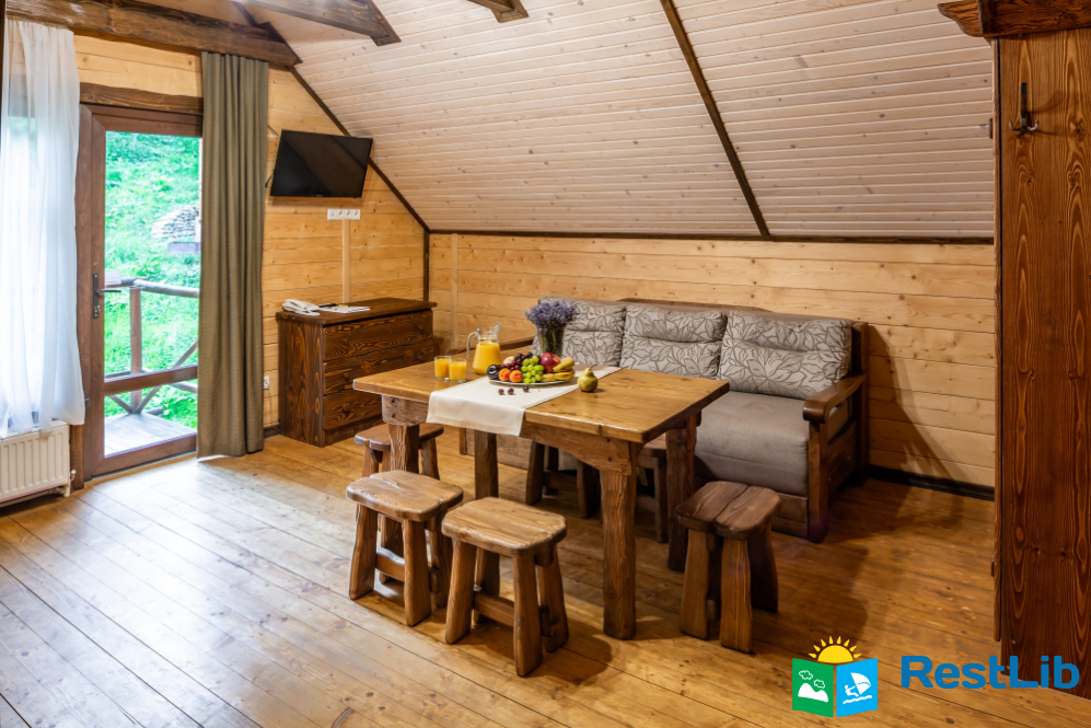 Великий вибір номерів вразить найвибагливіших гостей, а для охочих усамітнитись на одинці з природою - чудові еко-будиночки. Вигляд з вікна вашої кімнати також можна обрати різний - вигляд величної річки Стрий, Карпатський ліс чи навіть внутрішній двір, з якого зручно дивитись за вашими дітками - все створено тільки для Вас!