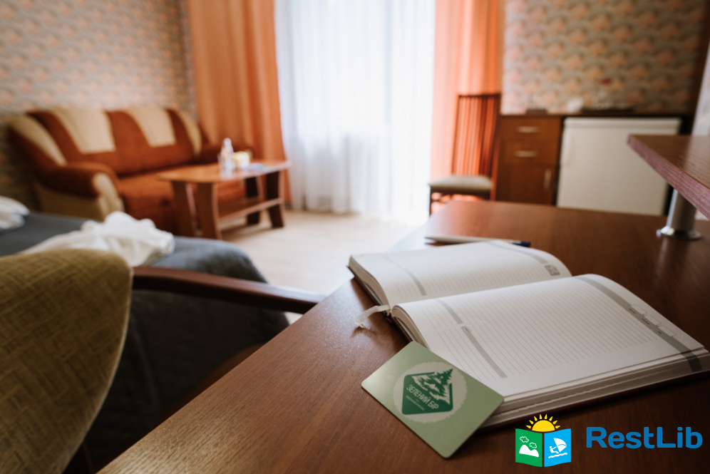 Напівлюкс - двокімнатний номер з балконом: вітальня з меблевим гарнітуром, спальна кімната з двоспальним ліжком Окремий санвузол: унітаз, умивальник, ванна, фен, рушники. Автономне опалення, круглодобово гаряча і холодна вода. Супутникове телебачення, телевізор, холодильник, безкоштовний Інтернет, телефон.