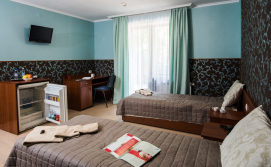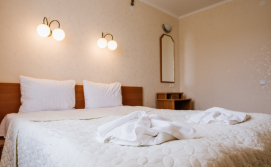 Стандарт покращеного планування- однокімнатний номер: двоспальне ліжко або два односпальних ліжка. М'яка частина. Окремий санвузол: унітаз, умивальник, душова кабіна або ванна, фен, рушники. Автономне опалення, круглодобово гаряча і холодна вода. Балкон. Супутникове телебачення, телевізор, холодильник, безкоштовний Інтернет, телефон.