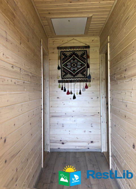 На першому поверсі: коридор, кухня-їдальня, відпочинкова кімната, вбиральня. На другому поверсі: дві двомісні спальні, вбиральня.