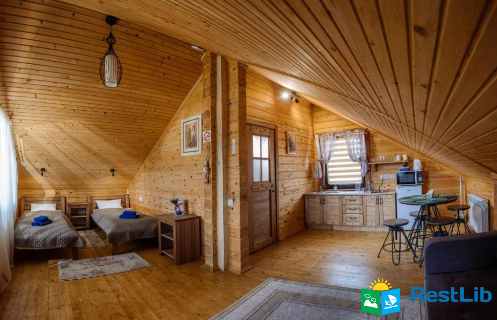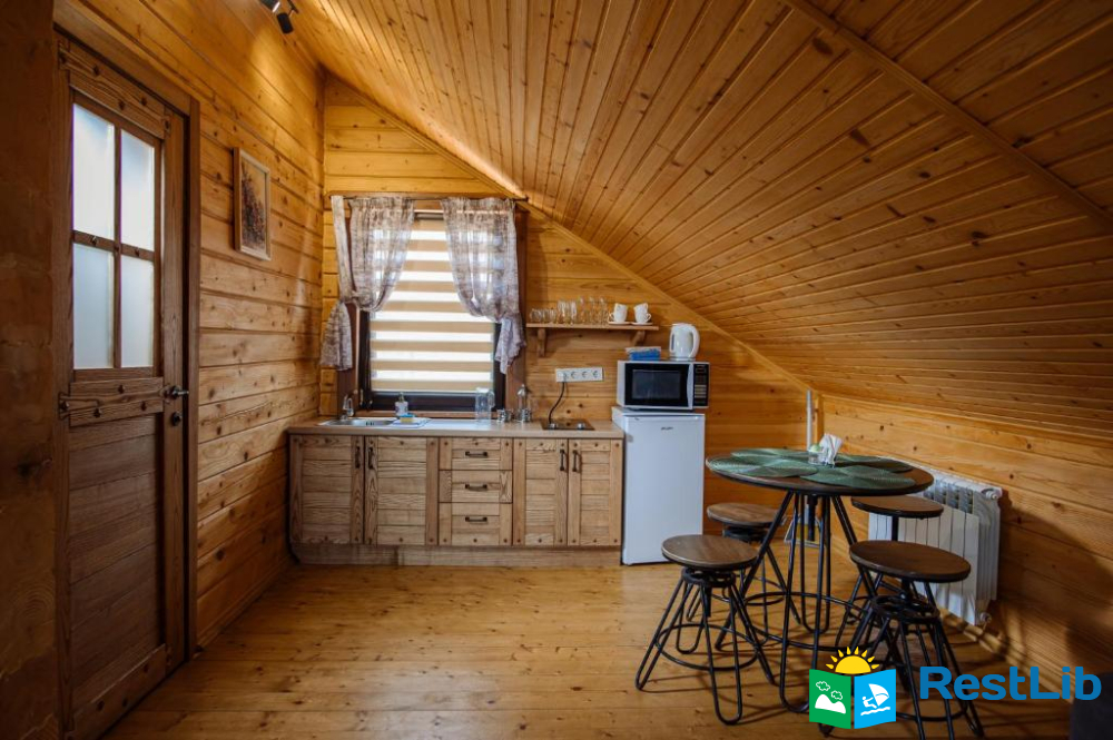 Садиба побудована у 2019 році, повністю із екологічно чистого матеріалу, всі будиночки та меблі із натуральноі деревини.