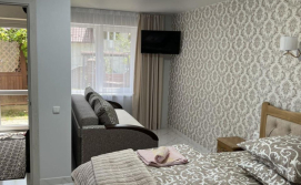 Всі номери обладнані сучасними меблями — тут є розкладні дивани, двоспальні ліжка, тумби, плазмові телевізори. Також є фен, електричний чайник, посуд, вода гаряча і холодна цілодобово!
