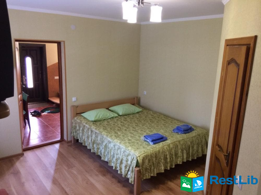В будинку є 6 номерів 2 номера на 4 людини та 4 номера на 2-ох людей, на другому поверсі 4 номера з виходом на балкон, гаряча вода постійно, повністю обладнена кухня, вітальня.