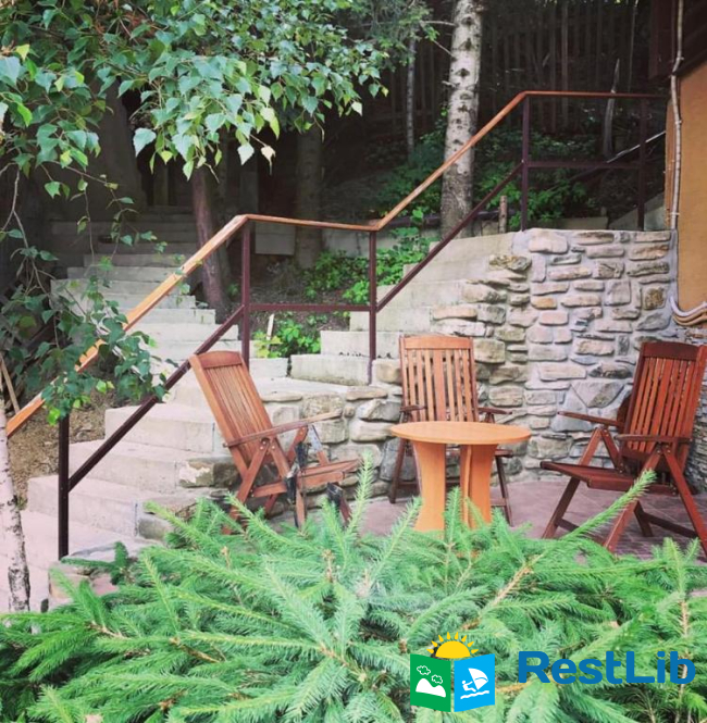 На великій озелененій території є альтанки з мангалами, гойдалки, місце для паркування.