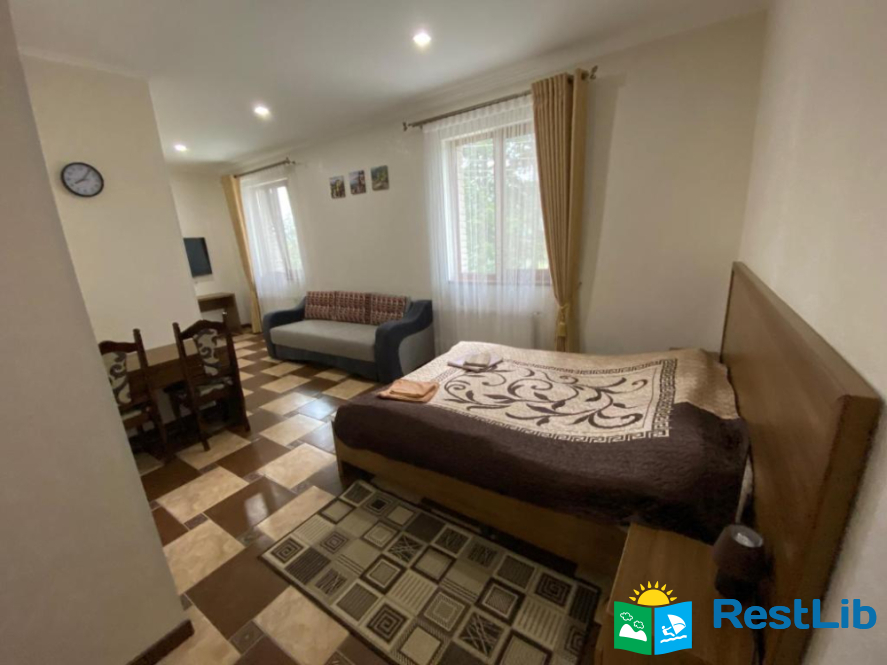 Гостям доступне розміщення в двомісних або чотиримісному номері. Із вікон відкривається чудовий вид на гори.