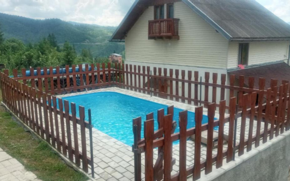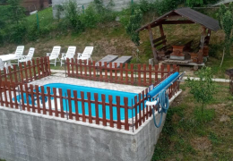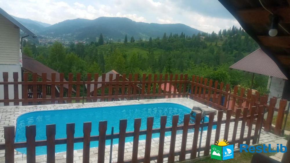 На території апартаментів "Біля лісу" облаштовано відкритий басейн і терасу.