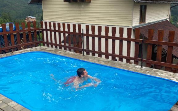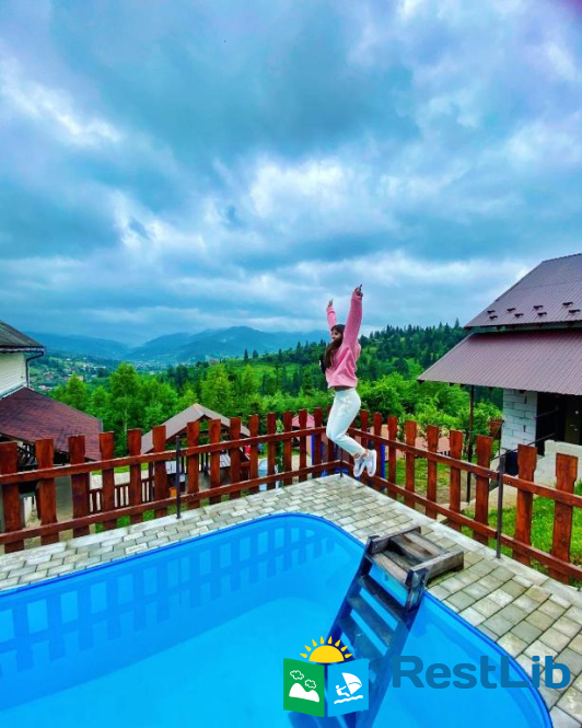 На подвір'ї є басейн і місце для барбекю, а також парковка.