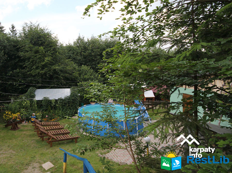 На території є 2 котеджі, альтанки, мангали, гойдалка, літній басейн.