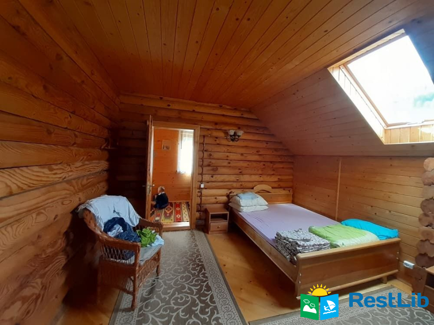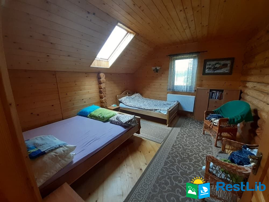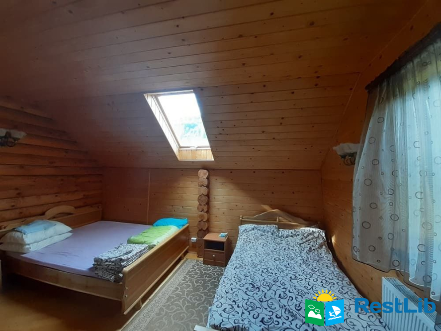 На 2му поверсі є дві спальні та санвузол. В одній спальні знаходиться: двоспальне та односпальне ліжко, в другій : двоспальне ліжко та розкладний односпальний диван.