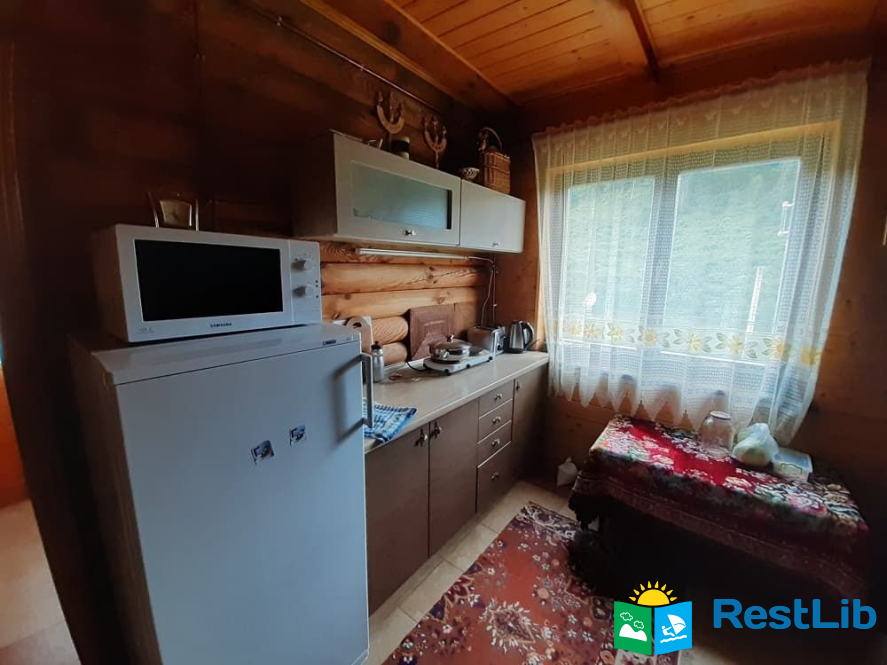 Кухня оснащена всім необхідним: холодильник, мк. піч, ел. чайник, варочна поверхня (ел.), кухонне приладдя. Пральна машинка, праска, фен. При потребі кухонний  диван трансформується в двоспальне ліжко.