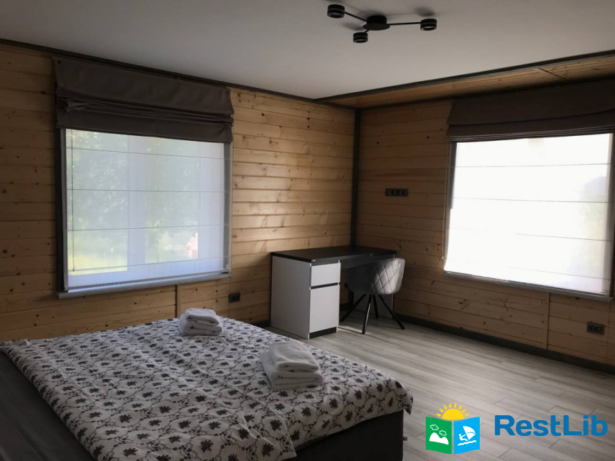 - Простора спальня з комфортним двоспальним ліжком та приємним інтер’єром для повноцінного сну та релаксу