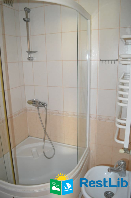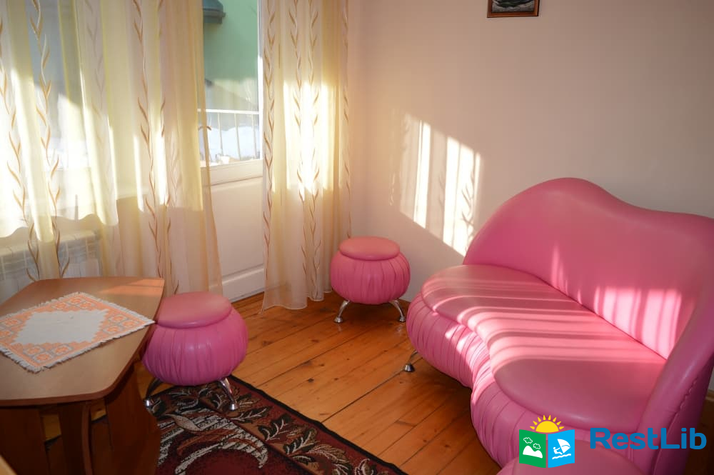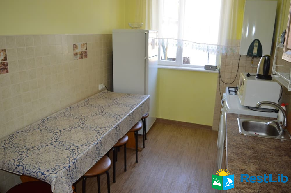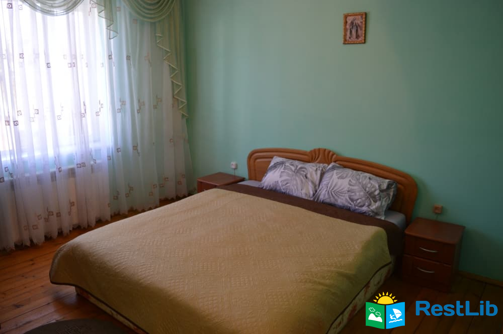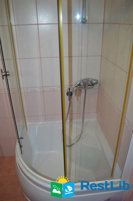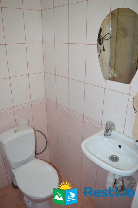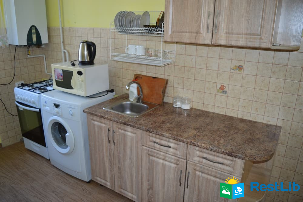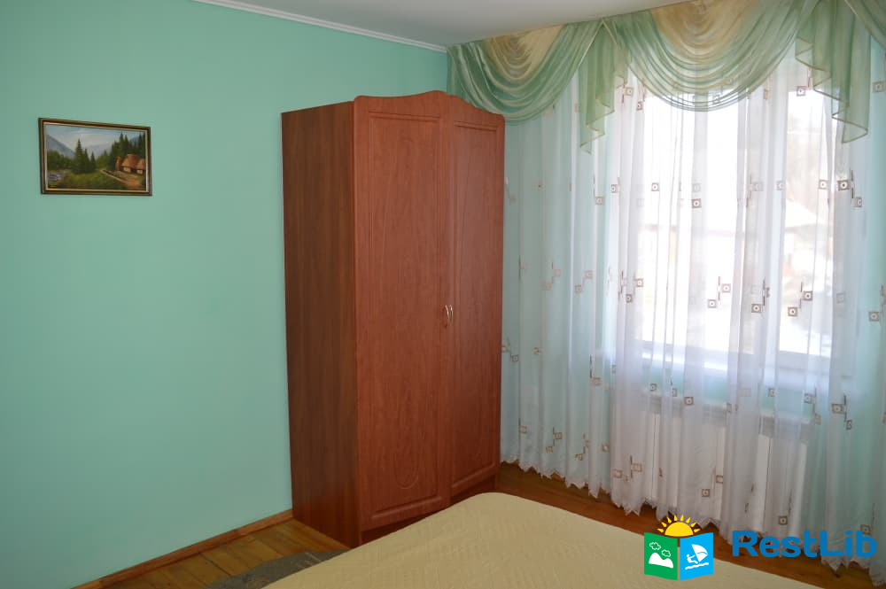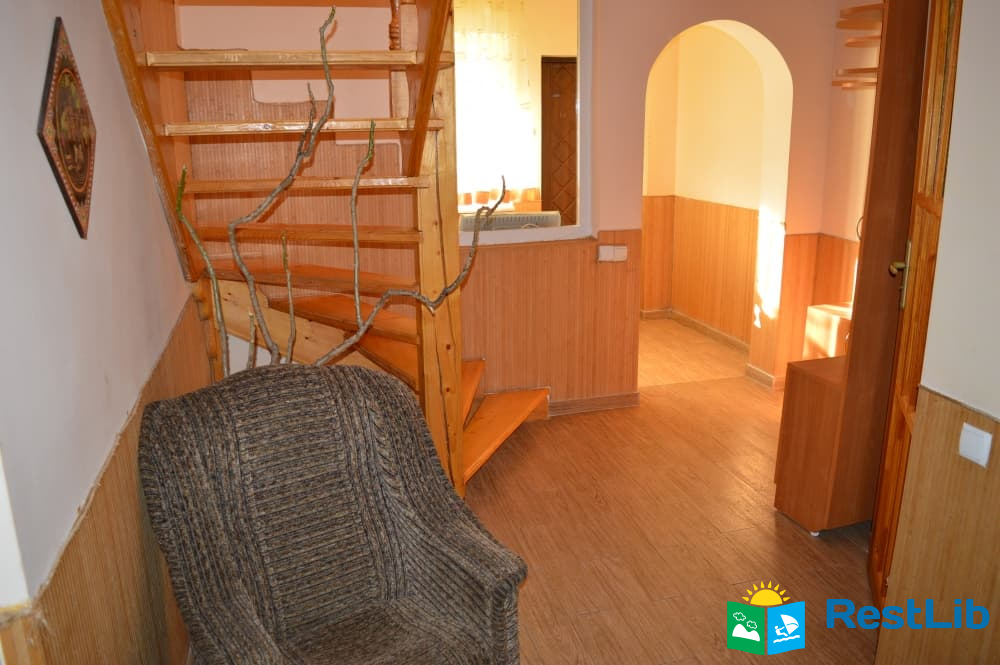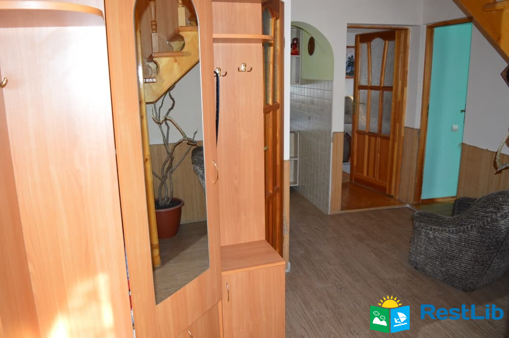Перший поверх: коридор, кухня (кухонний гарнітур, техніка, посуд), санвузол (душ, туалет, умивальник), один двомісний номер з великим розкладним диваном, та двомісний з двоспальним ліжком.