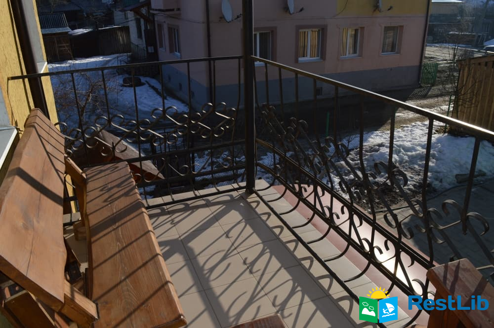 Другий поверх : місце для відпочинку, тераса, санвузол (душ, туалет, умивальник), два двомісні номери з двоспальним ліжком, та один одномісний номер, з односпальним.