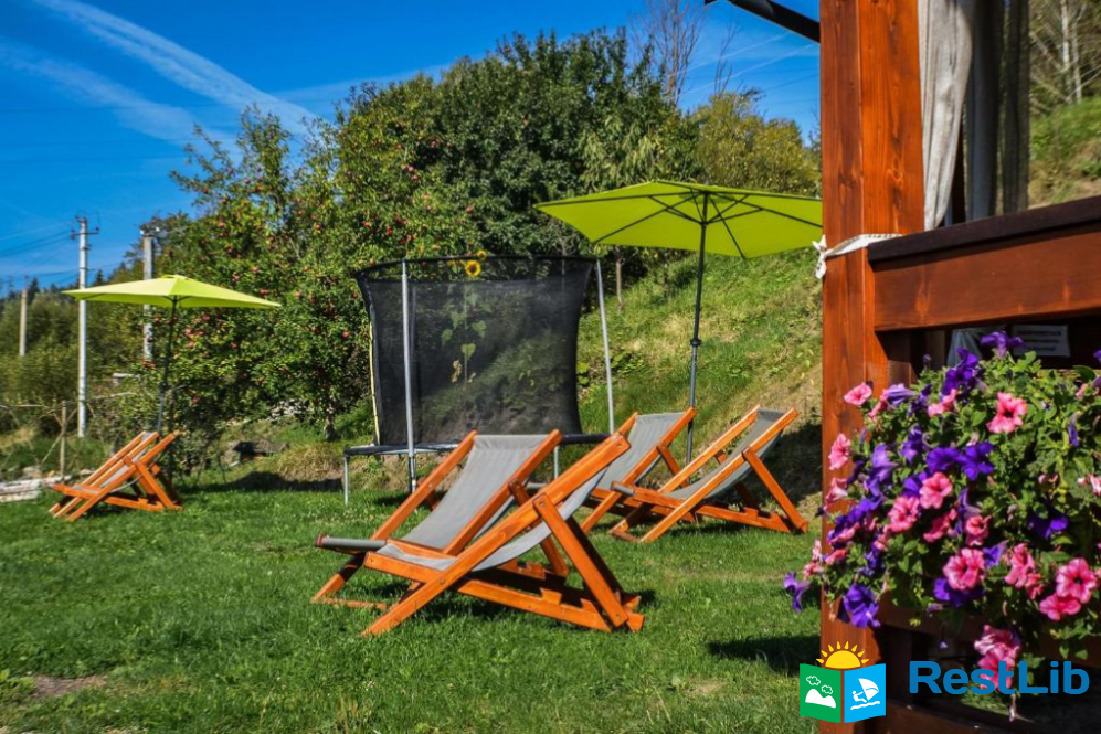 Велике подвір'я, мангал, індивідуальна для кожного котеджа альтанка та гойдалка зробить Ваш відпочинок унікальним. Для дітей на території є батут! Величезні панорамні вікна із незрівнянним краєвидом на гори змусять Вас забути про міську суєту та справді незабутньо відпочити!
