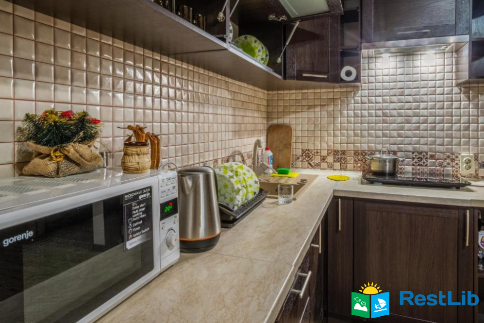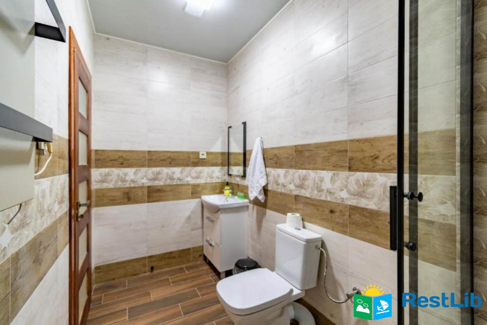 На першому поверсі знаходиться прихожа, а також кухня-студія з диваном, котрий за потреби розкладається на 2-х осіб. А також санвузол із душовою кабінкою.