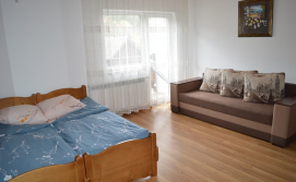 Номери на другому поверсі. В номері : телевізор, журнальний стіл, шафа, двоспальне ліжко, розкладний диван, санвузол, кухня загальна. Два номери мають вихід на балкон.