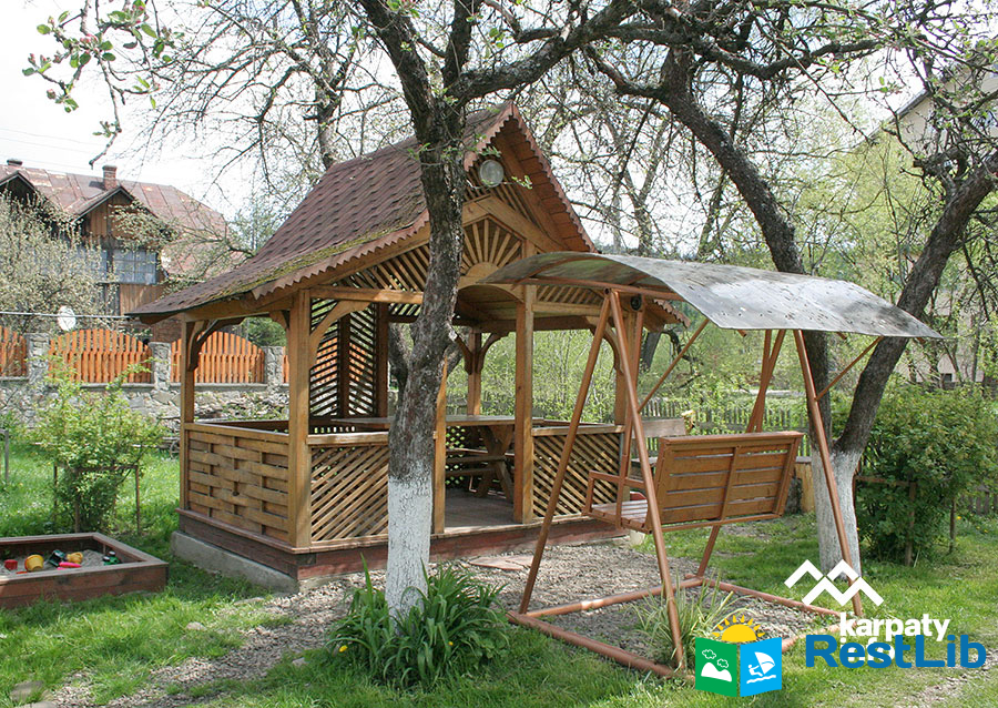 Біля будинку є сад з альтанкою і мангалом, неподалік — річка (10 м), в якій влітку можна купатися.