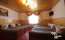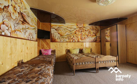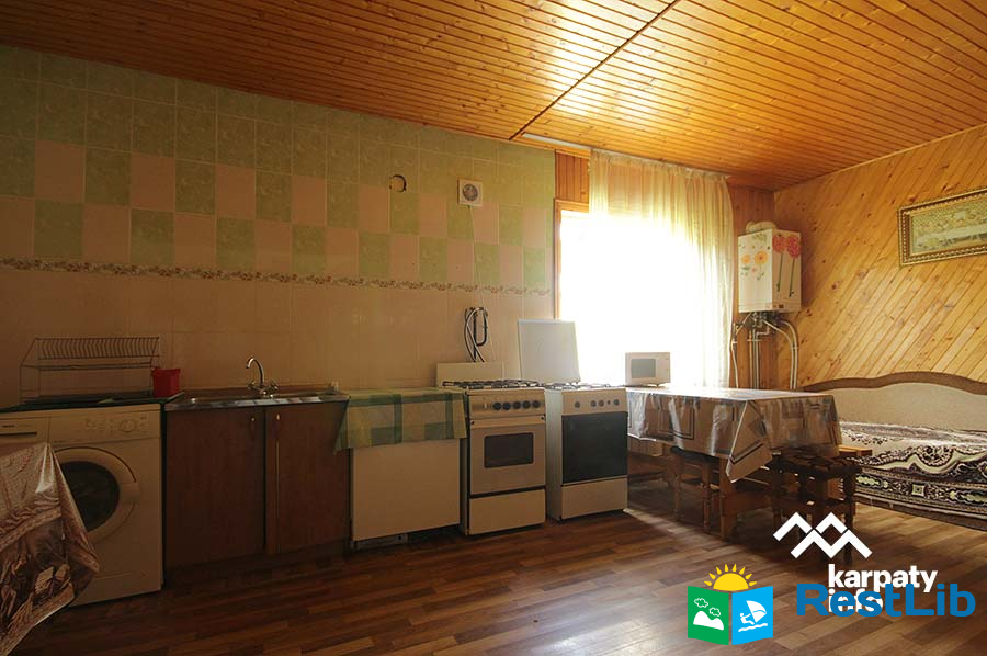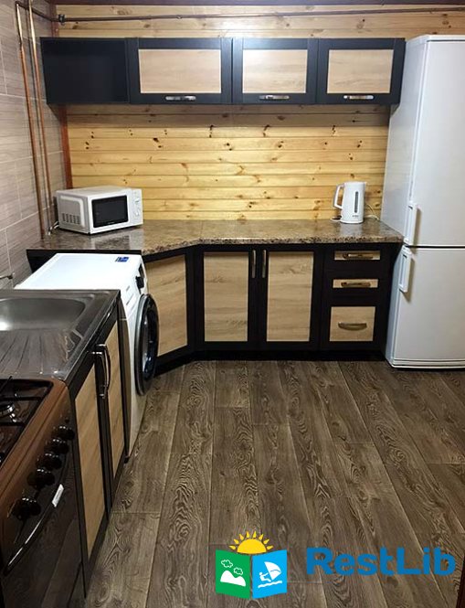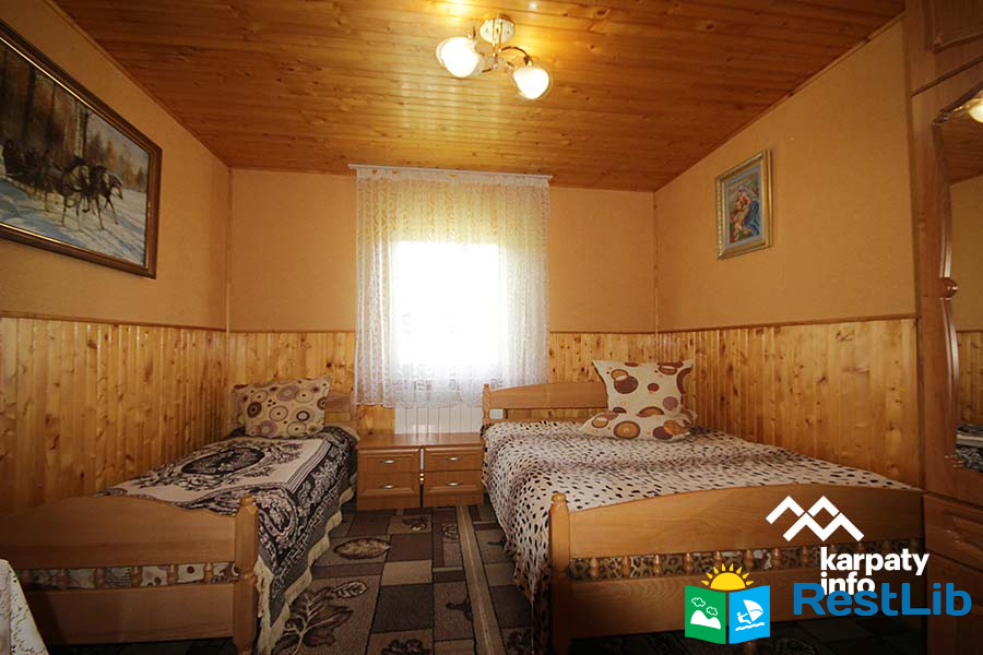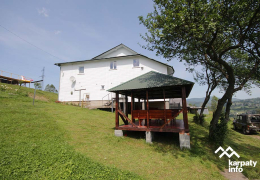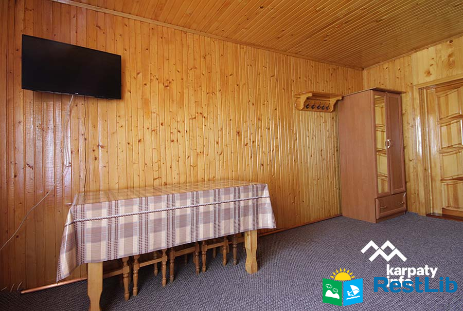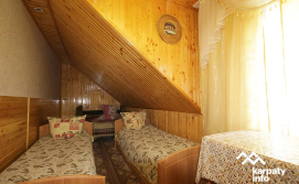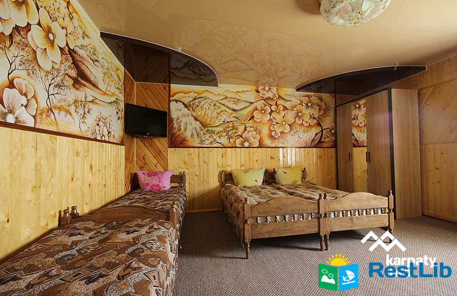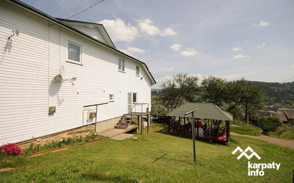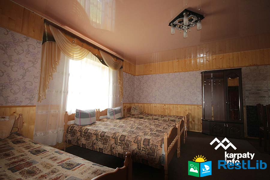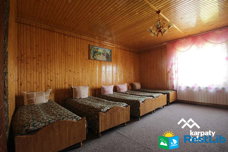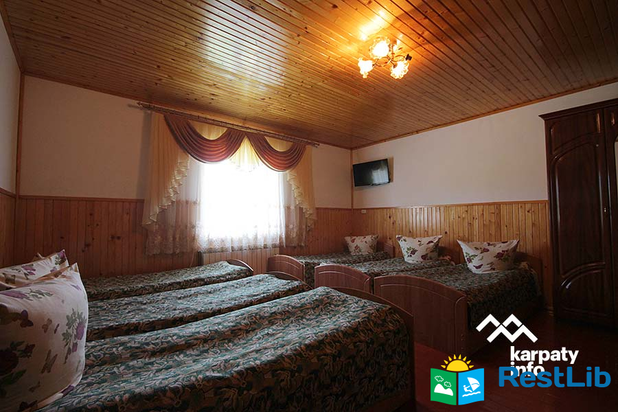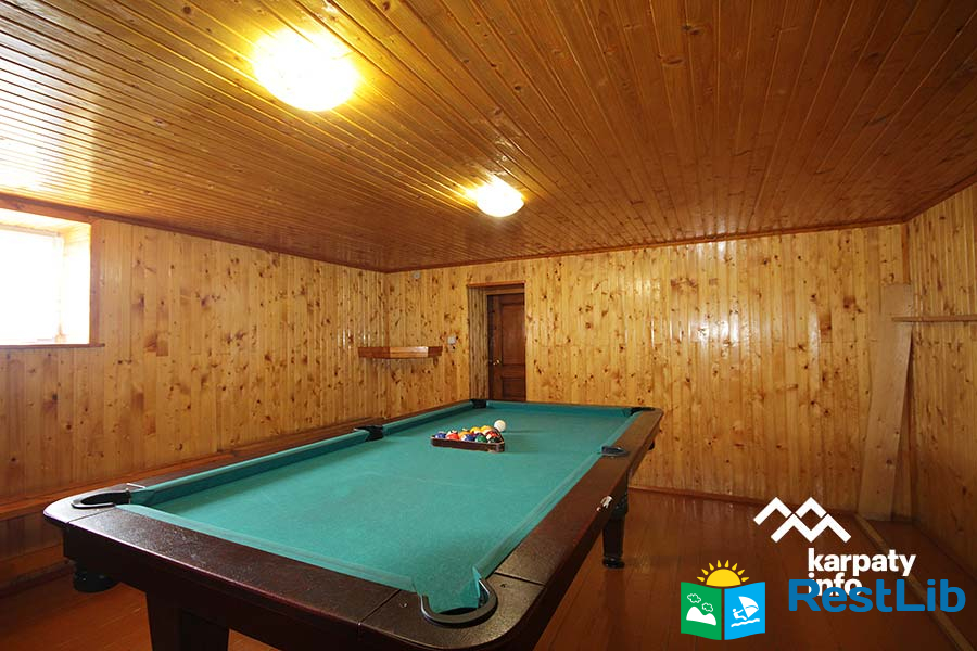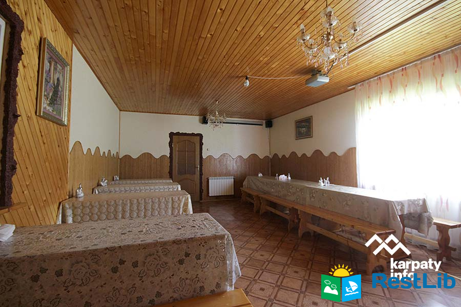 На подвір'ї є двоповерховий будинок (15 номерів), альтанка, мангал, батут, відкритий літній басейн.