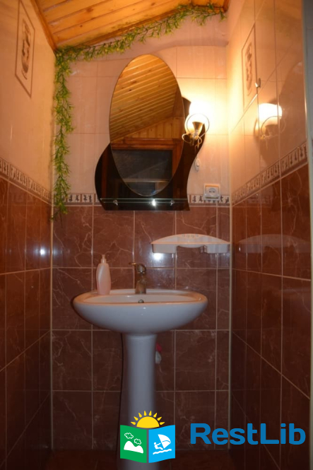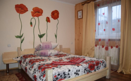 Другий поверх будинку. Чотири двомісних номери, в кожному : двоспальне або 2 односпальні ліжка, шафа, обідній стіл, телевізор. Кухня на поверсі Два санвузли на 4 кімнати , один роздільний (окремо душ, окремо туалет).