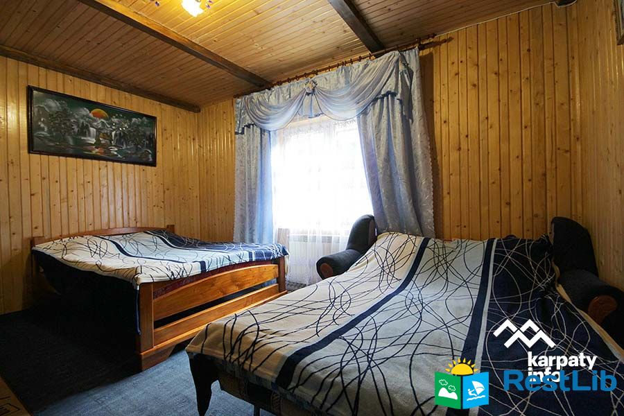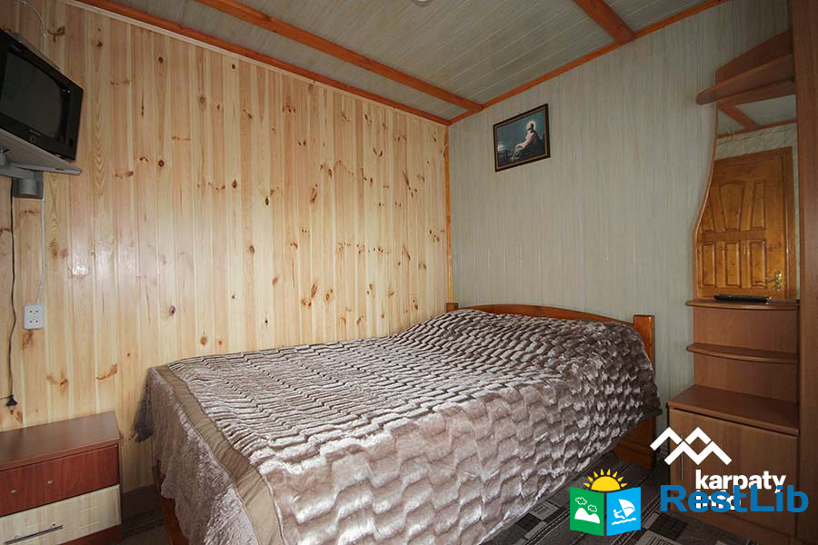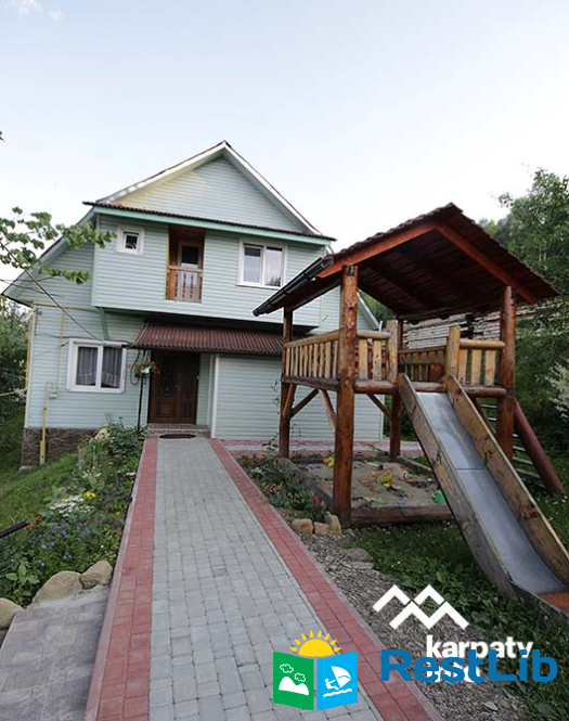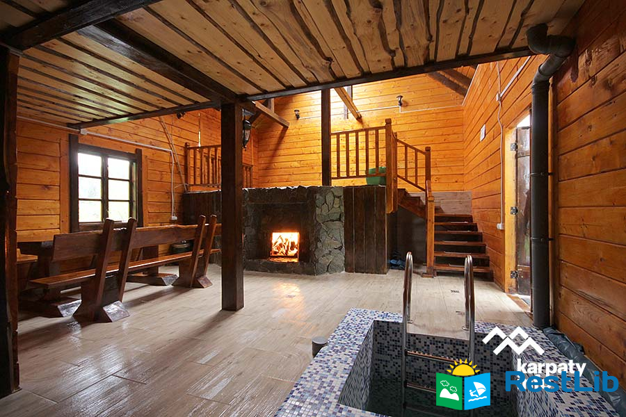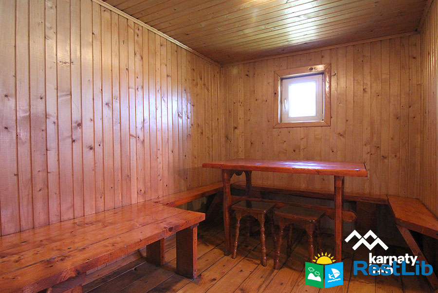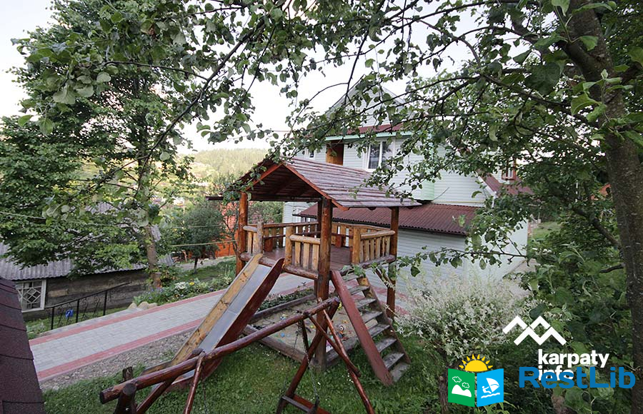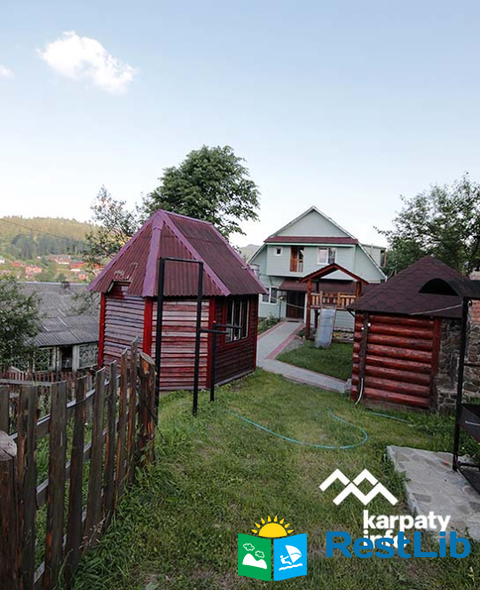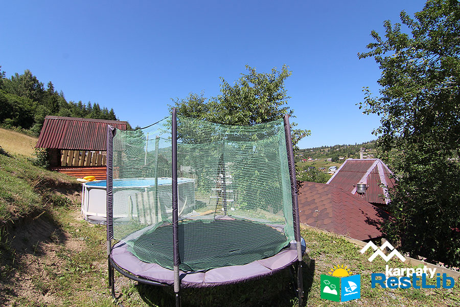 На подвір'ї є двоповерховий будинок (14-16 осіб), колиба, альтанки, мангали, кухня для загального користування, дитячий майданчик, батут, гойдалка, літній басейн, сауна та оздоровчий чан.