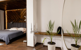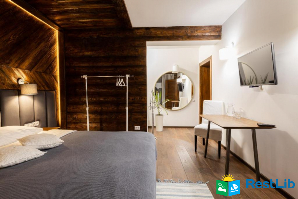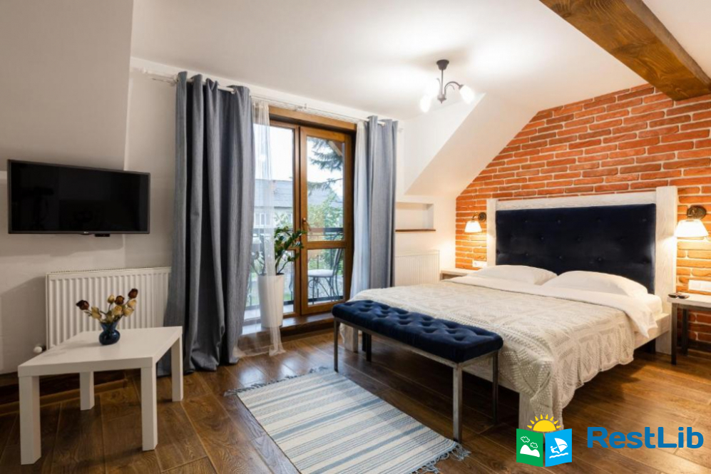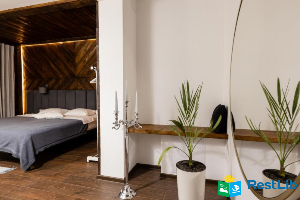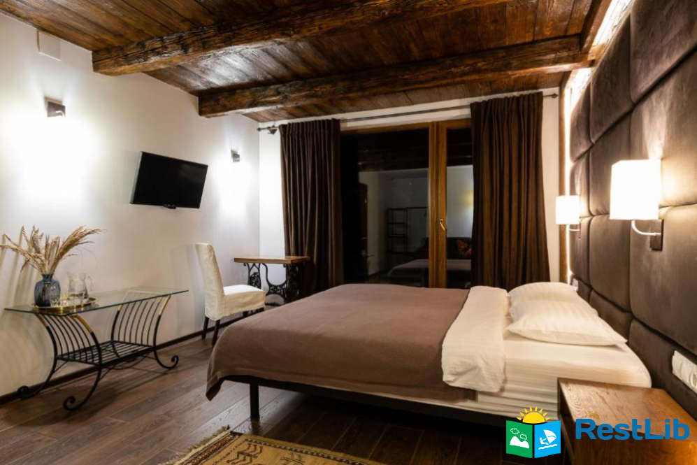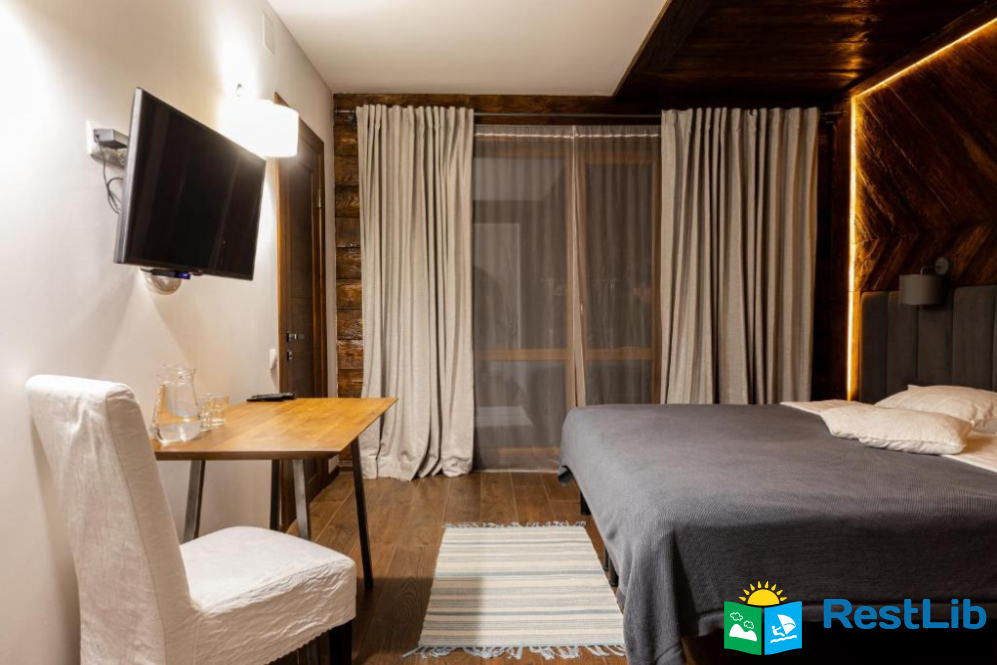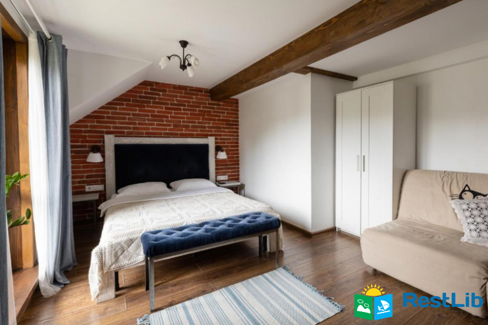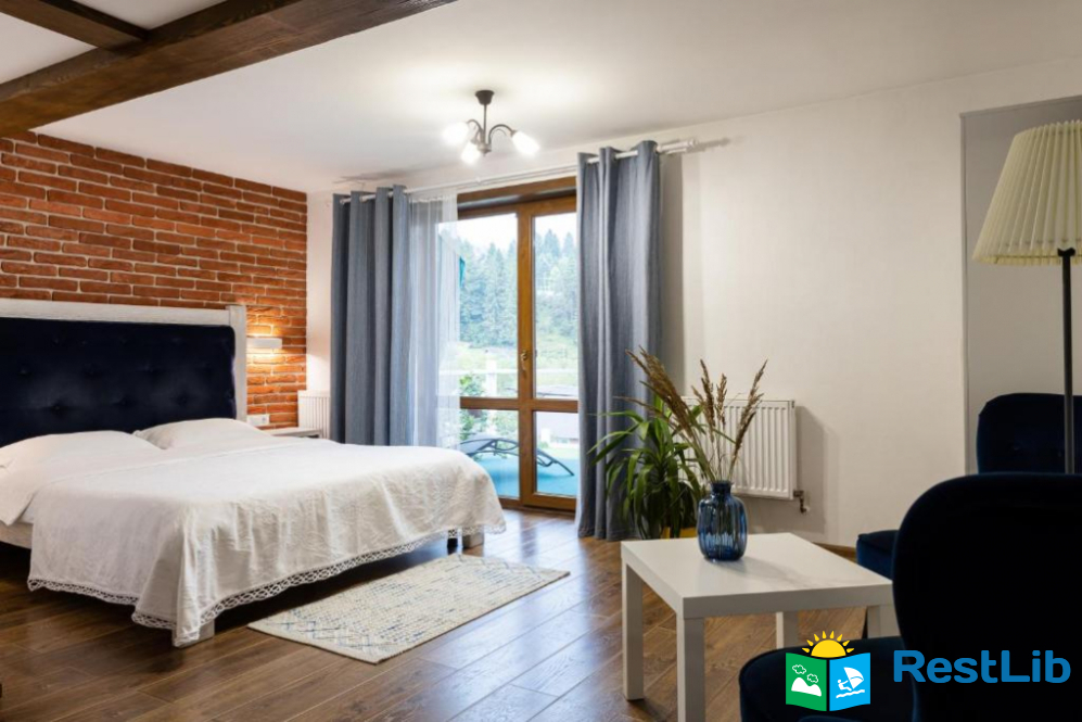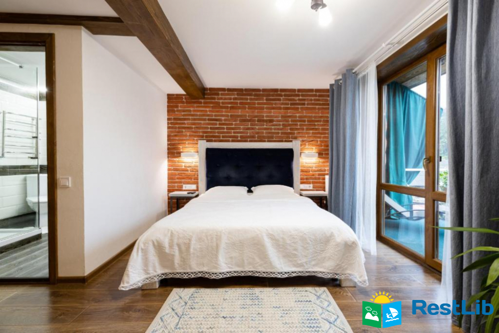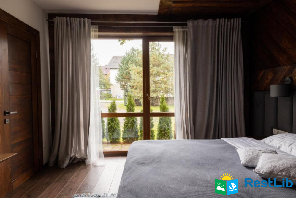 В будинку 5 просторих номерів з власними санвузлами: 2 номери на першому поверсі та 3 номери на другому. Усі номери з панорамними вікнами та зручними матрацами розміром king size.