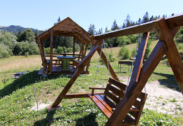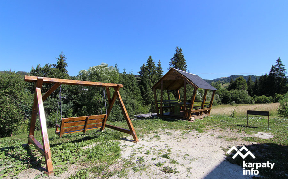На території приватної садиби розташований триповерховий будинок на 3 номери, сауна на дровах, оздоровчий чан, альтанка, мангал, гойдалка.