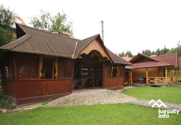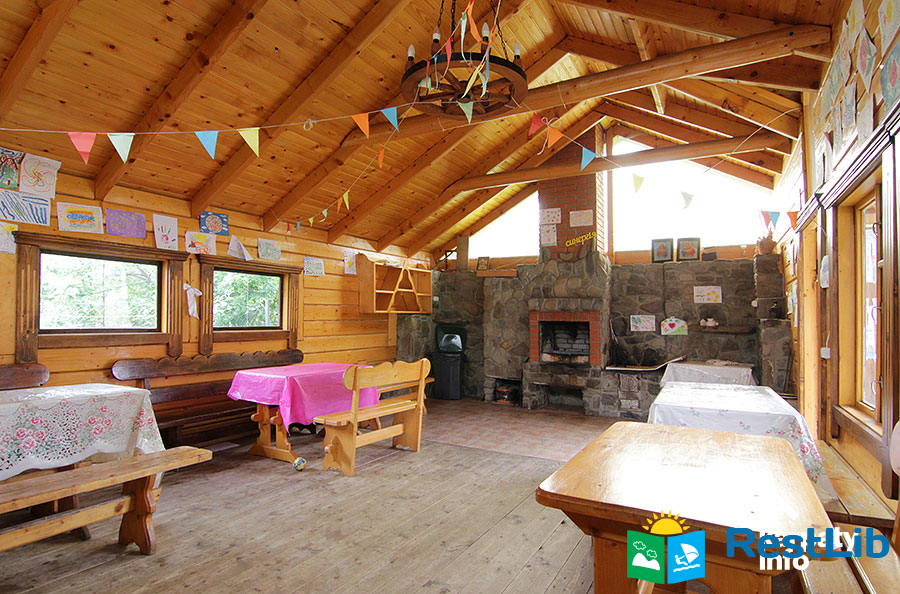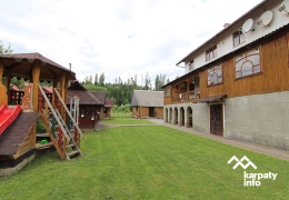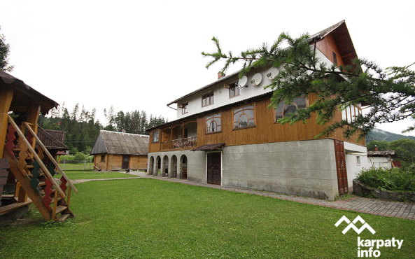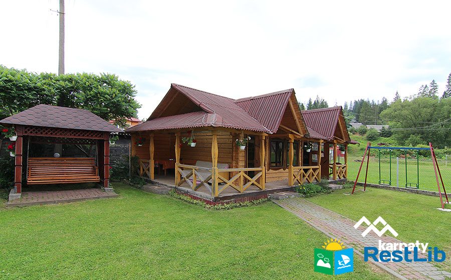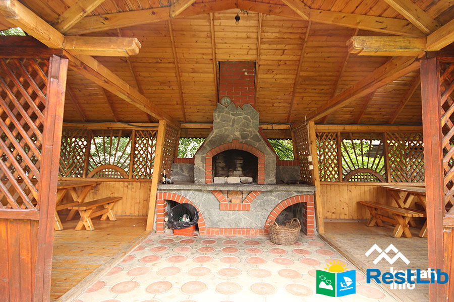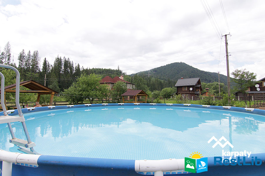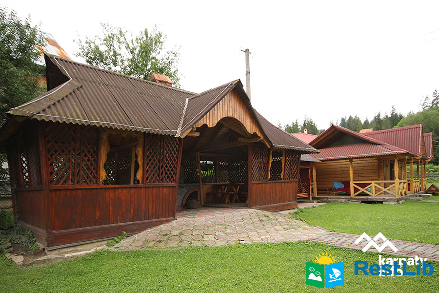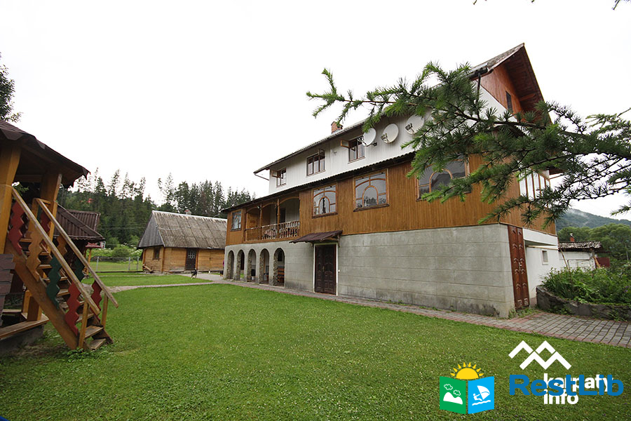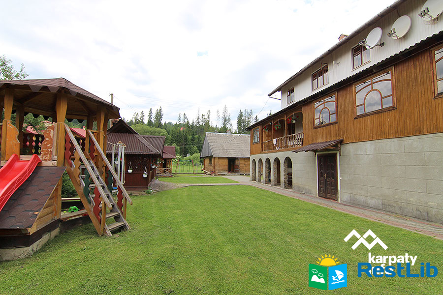 На території є триповерховий будинок на 30-35 місць, 2 колиби з камінами, 3 альтанки, сауна, батут, літні басейни.
