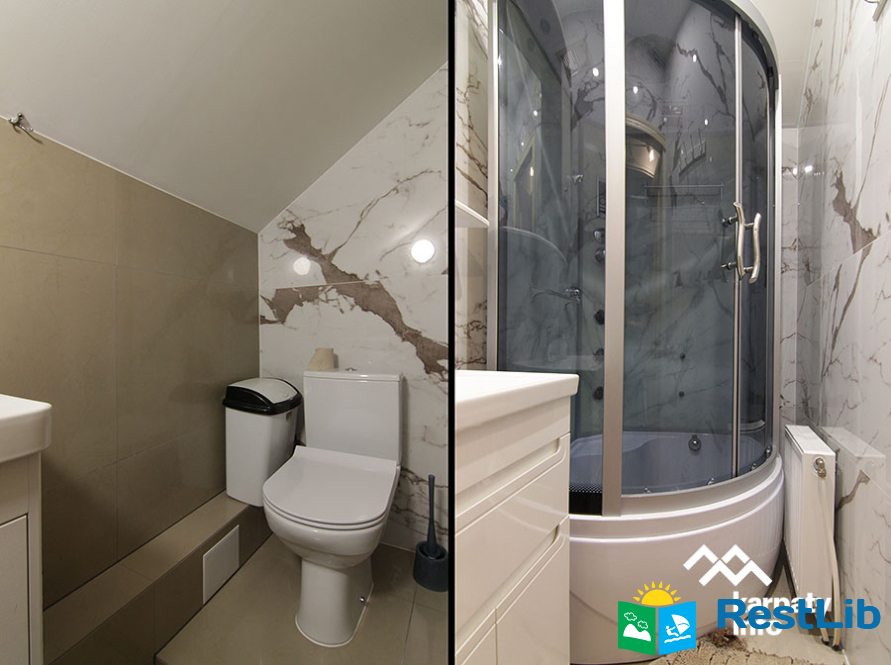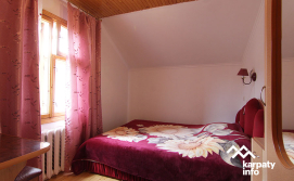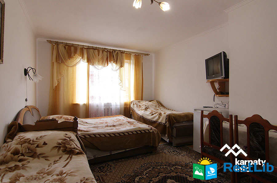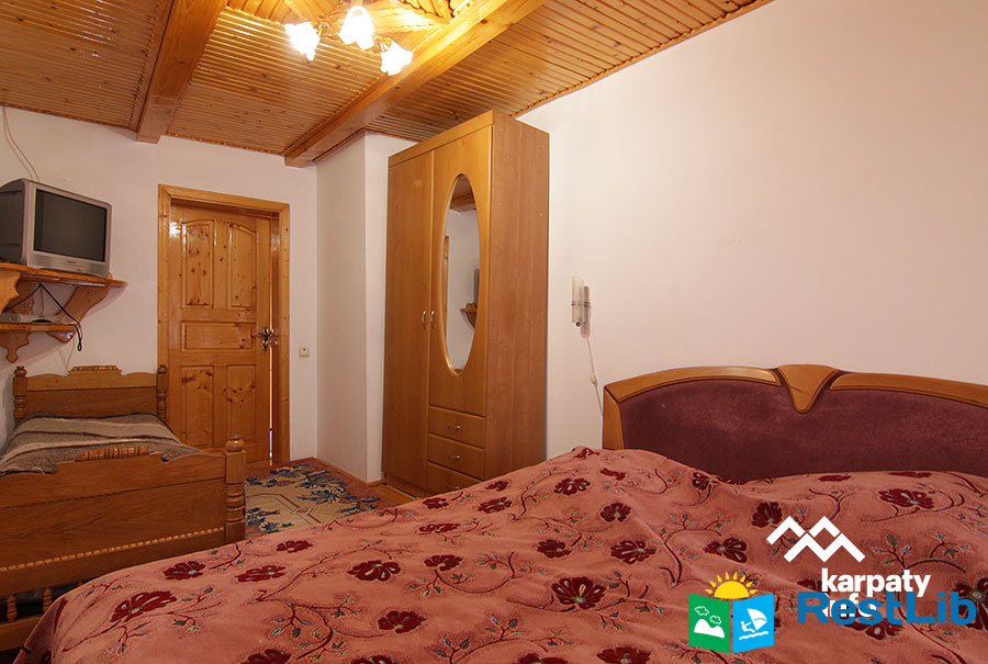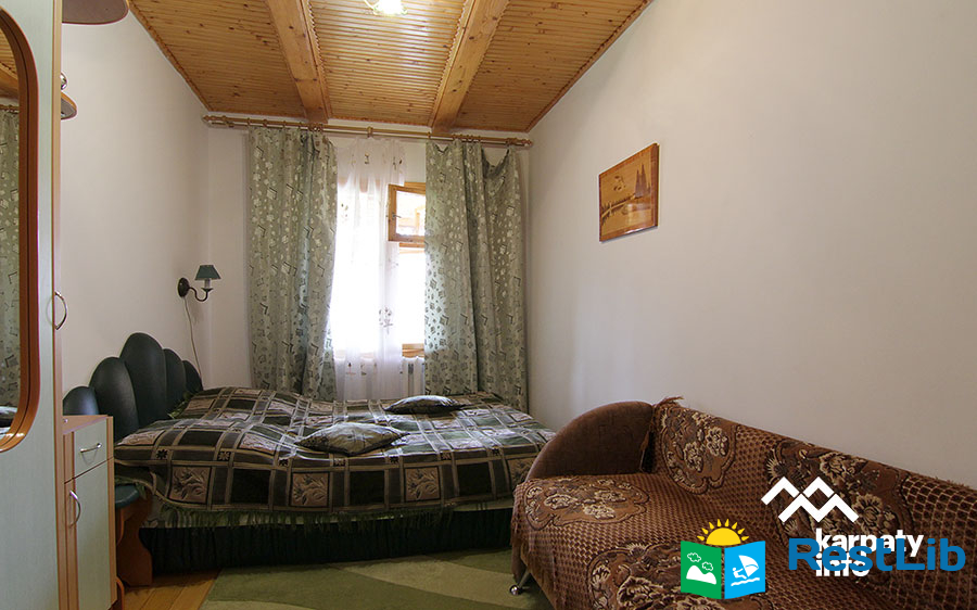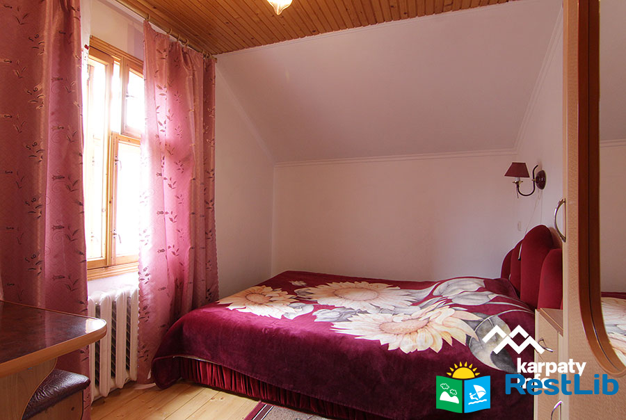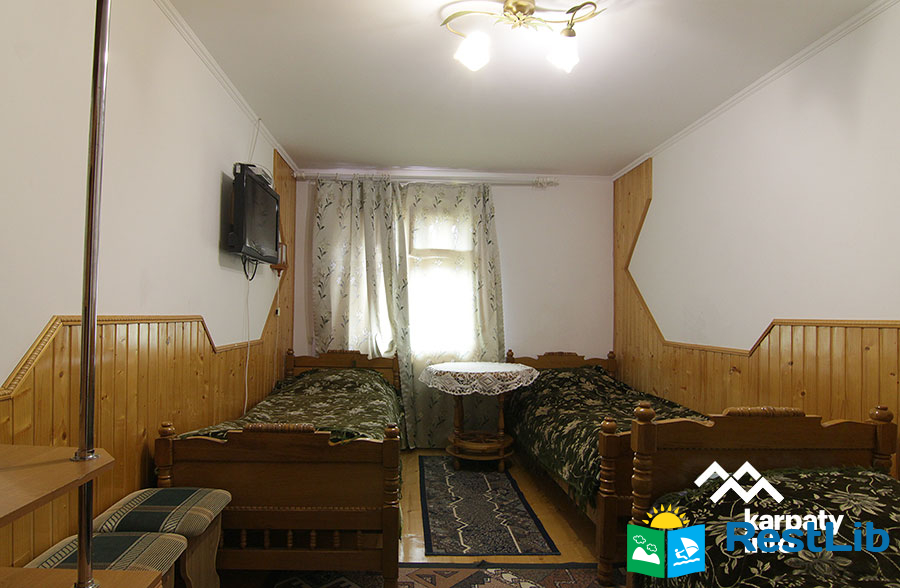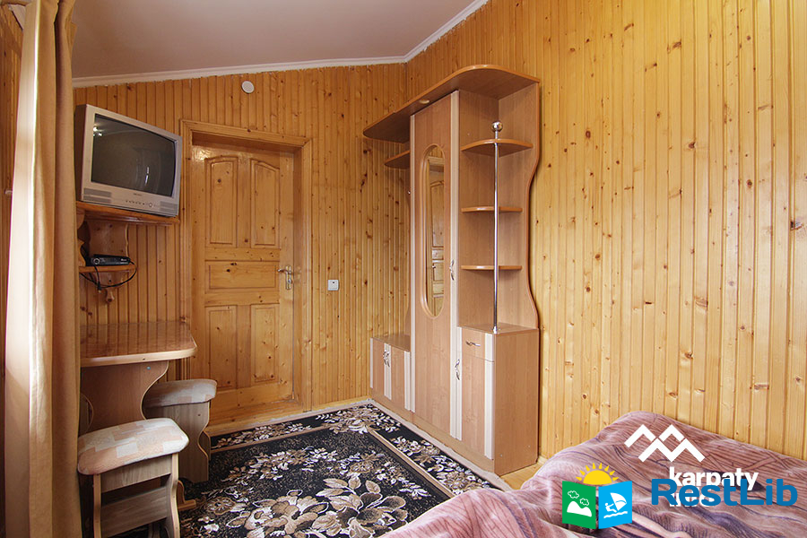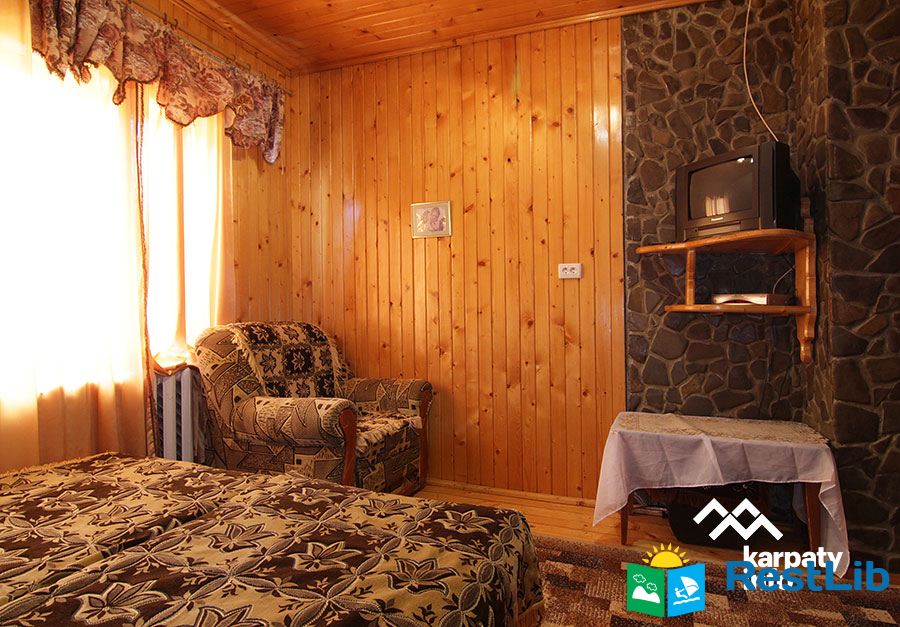 На території є триповерховий будинок на 30-35 місць, 2 колиби з камінами, 3 альтанки, сауна, батут, літні басейни.