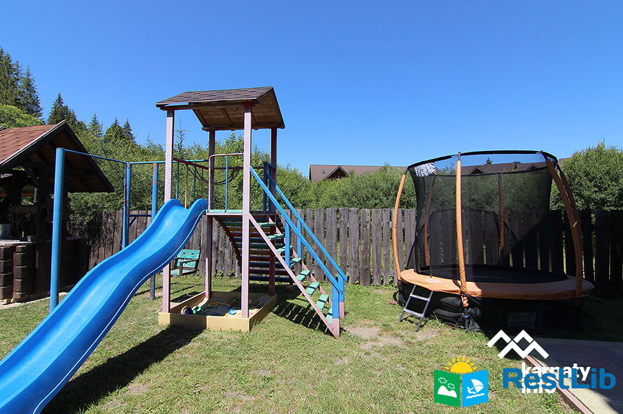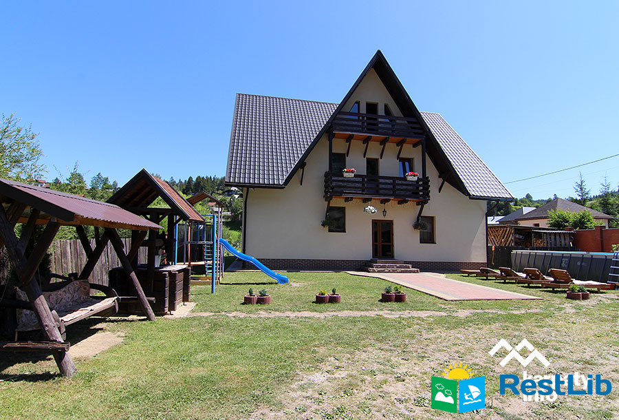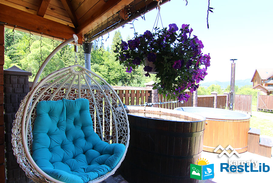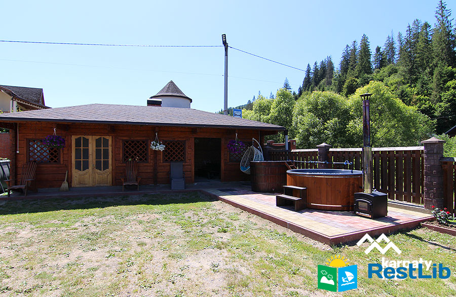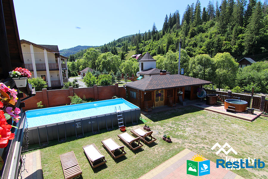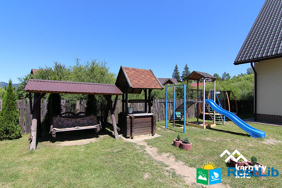 На території є триповерховий будинок на 5 номерів, альтанка з мангалом, гойдалка, дитячий майданчик, літній басейн, джакузі.