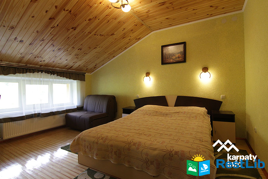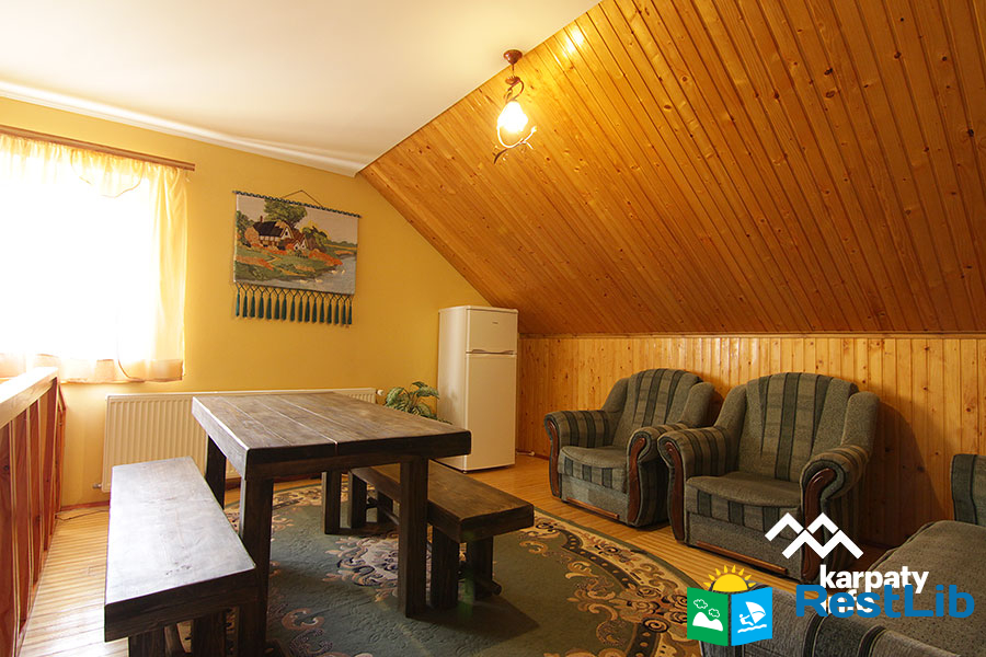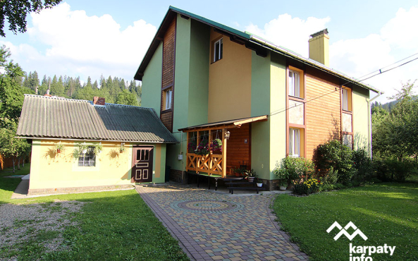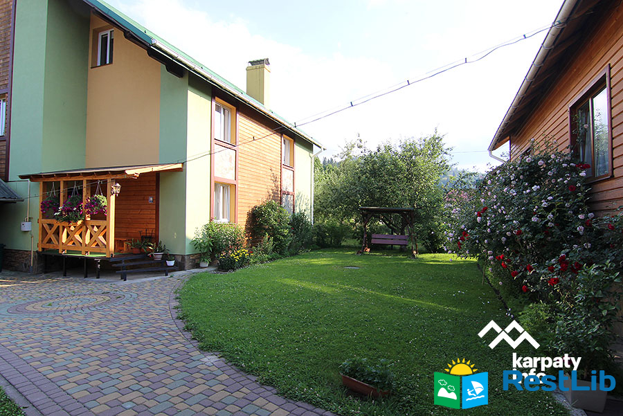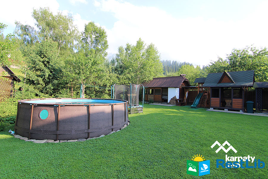 На території є триповерховий котедж на 8 номерів, альтанки, мангали та дитячий майданчик.